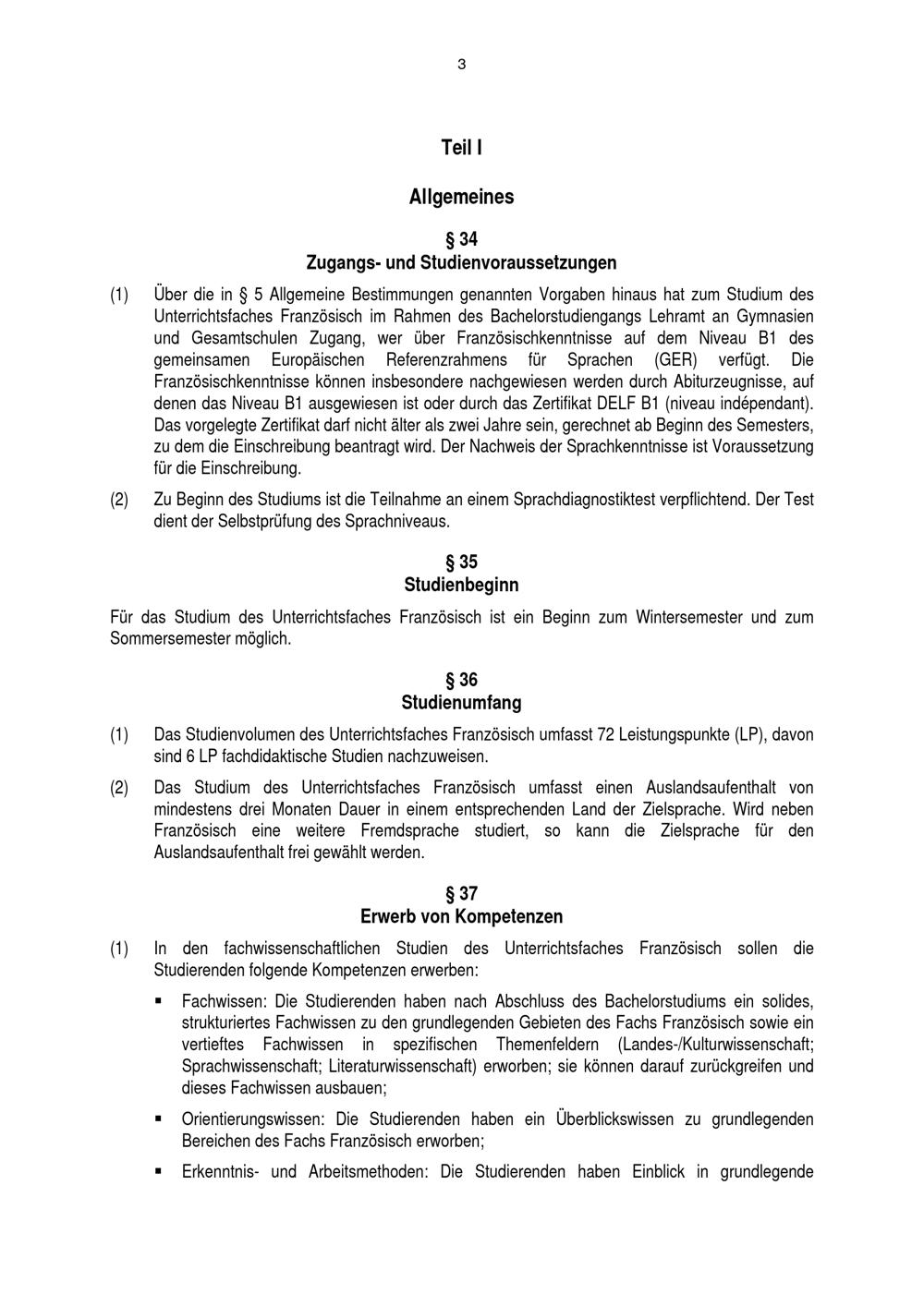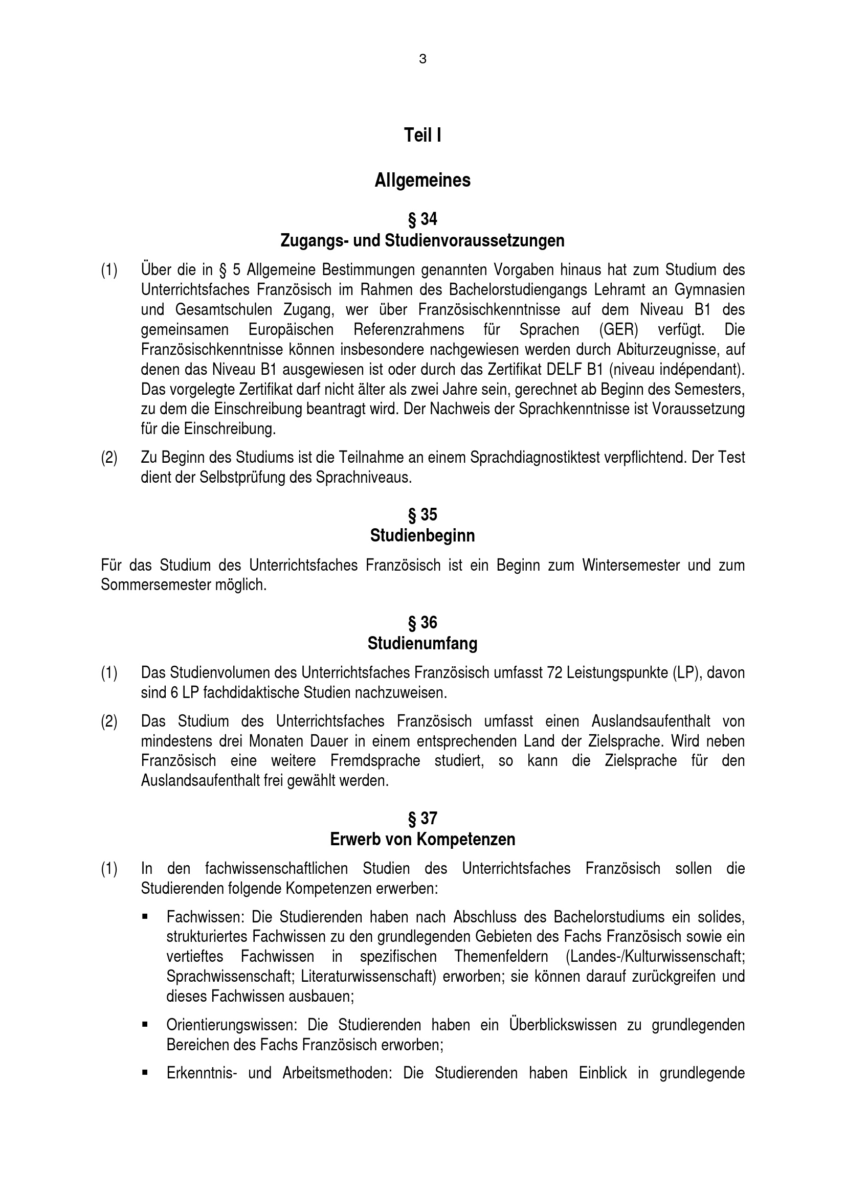 Besondere Bestimmungen der Prüfungsordnung für den Bachelorstudiengang Lehramt an Gymnasien und Gesamtschulen mit dem Unterrichtsfach Französisch an der Universität Paderborn : vom 31. August 2016