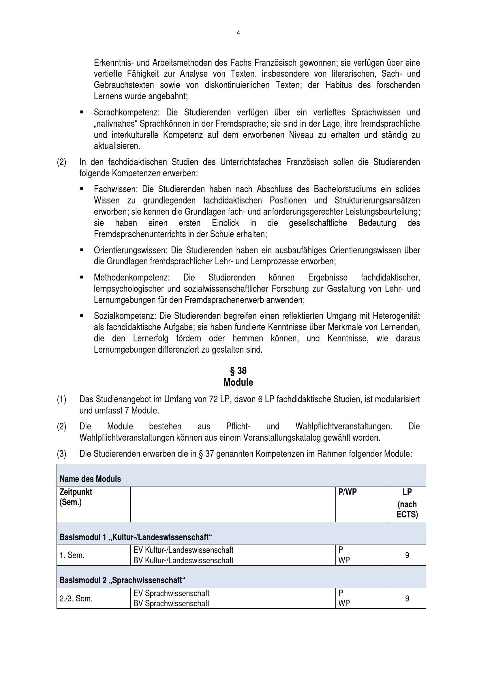 (2) In den fachdidaktischen Studien des Unterrichtsfaches Französisch sollen die[...]