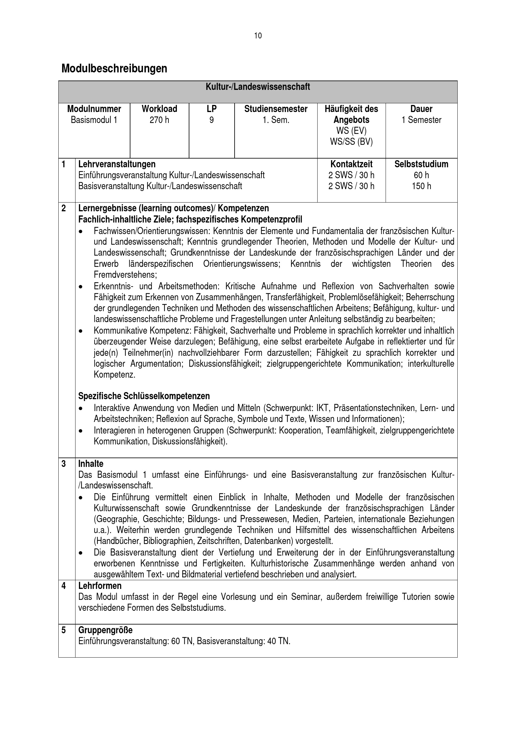 Besondere Bestimmungen der Prüfungsordnung für den Bachelorstudiengang Lehramt an Gymnasien und Gesamtschulen mit dem Unterrichtsfach Französisch an der Universität Paderborn : vom 31. August 2016