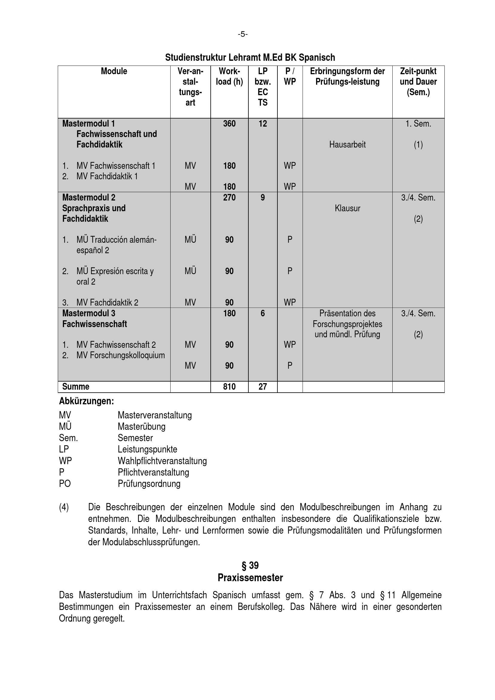 Das Studium des Unterrichtsfachs Spanisch setzt über die in § 5 Allgemeine Bestimmungen genannten Vorgaben hinaus keine weiteren voraus. Spanisch ist eine der beiden in § 5 der Allgemeinen Bestimmungen geforderten Fremdsprachen.