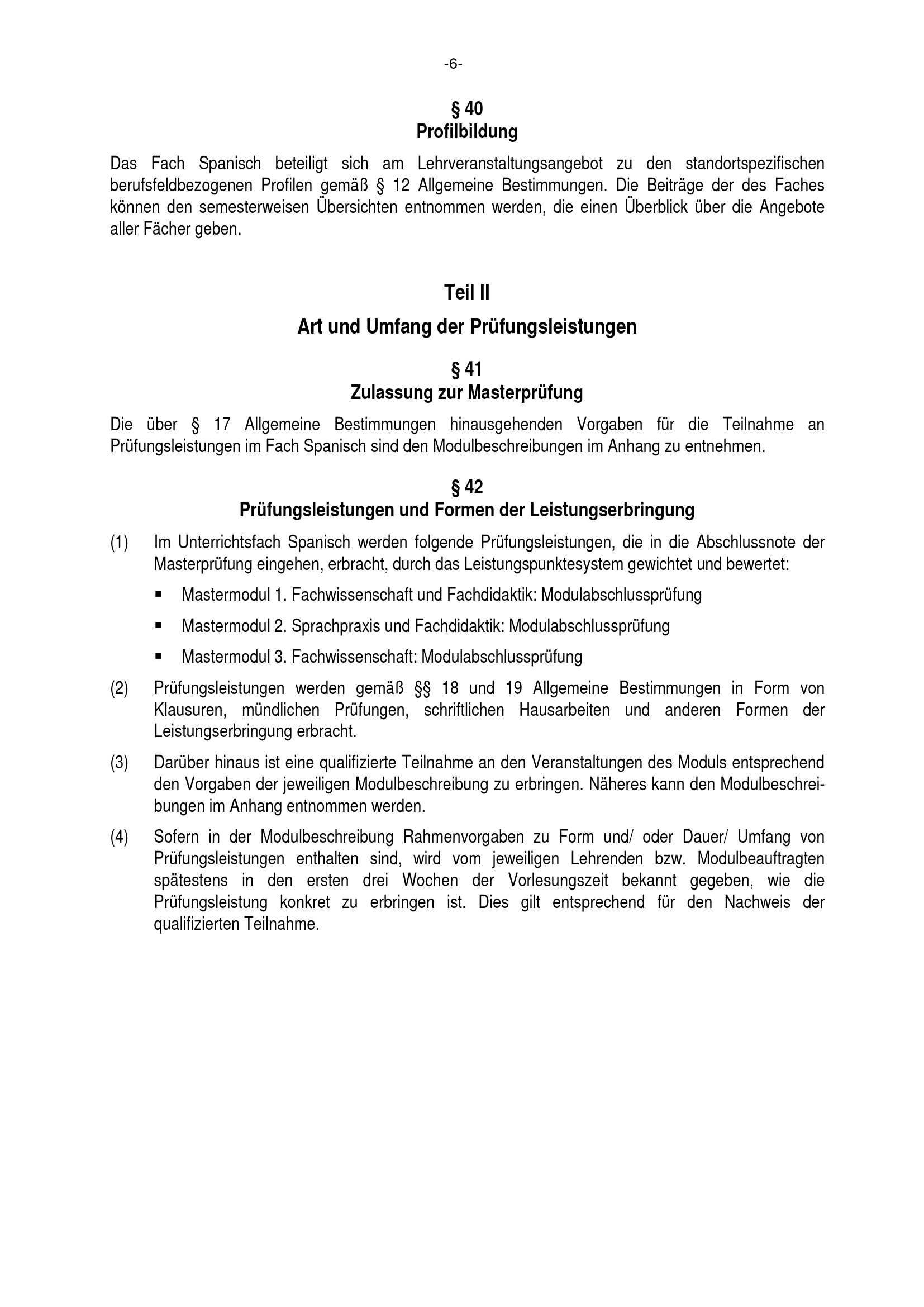 Das Studium des Unterrichtsfachs Spanisch setzt über die in § 5 Allgemeine Bestimmungen genannten Vorgaben hinaus keine weiteren voraus. Spanisch ist eine der beiden in § 5 der Allgemeinen Bestimmungen geforderten Fremdsprachen.