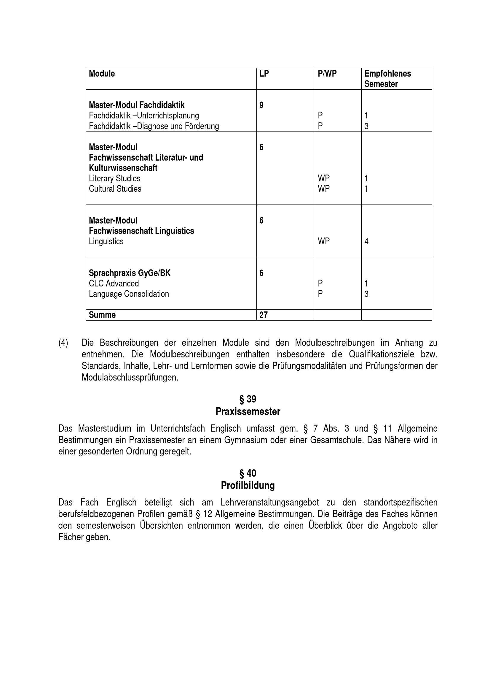 Das Studium des Unterrichtsfachs Englisch setzt über die in § 5 Allgemeine Bestimmungen genannten Vorgaben hinaus keine weiteren voraus. Englisch ist eine der beiden in § 5 der Allgemeinen Bestimmungen geforderten Fremdsprachen.