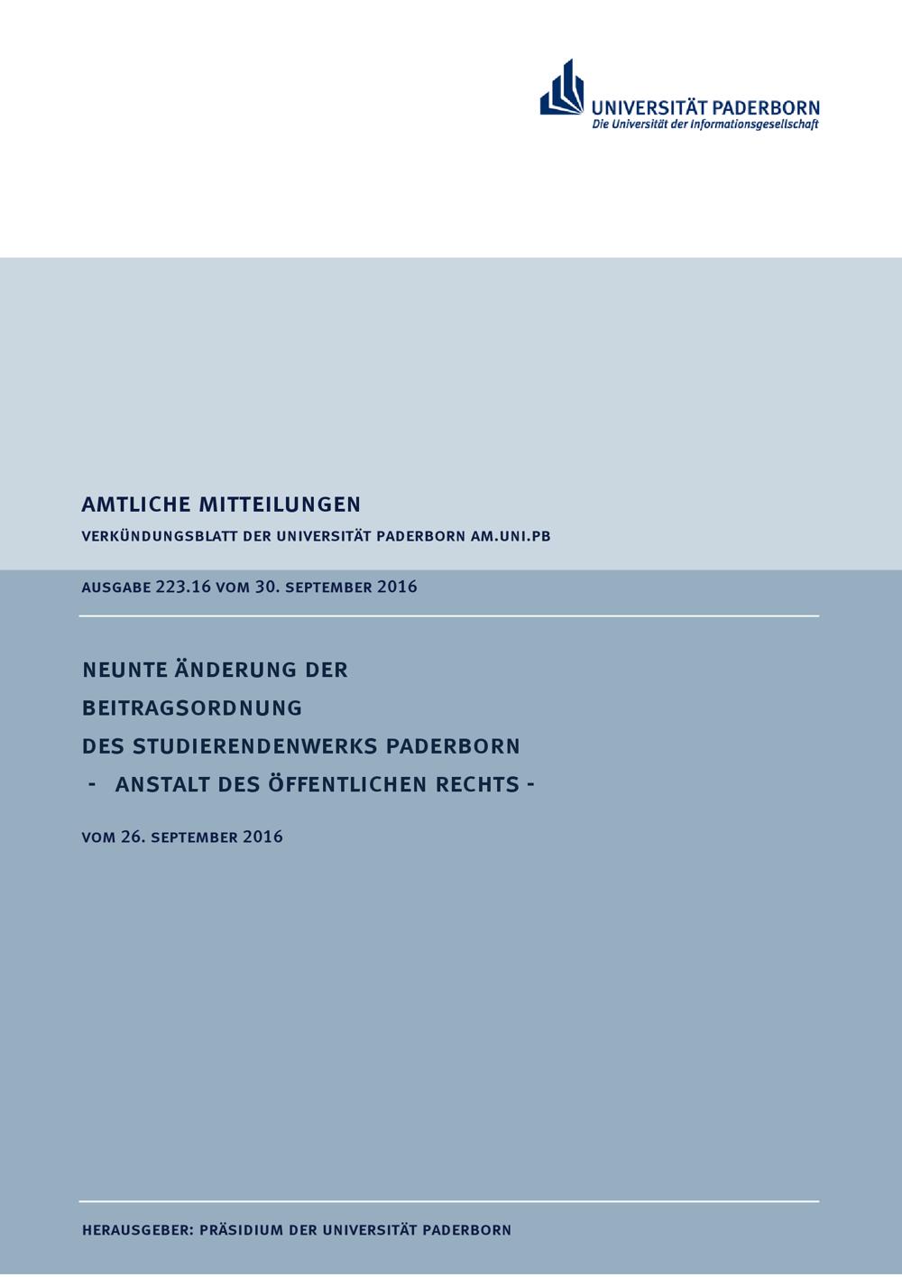 Neunte Änderung der Beitragsordnung des Studierendenwerks Paderborn - Anstalt des[...]