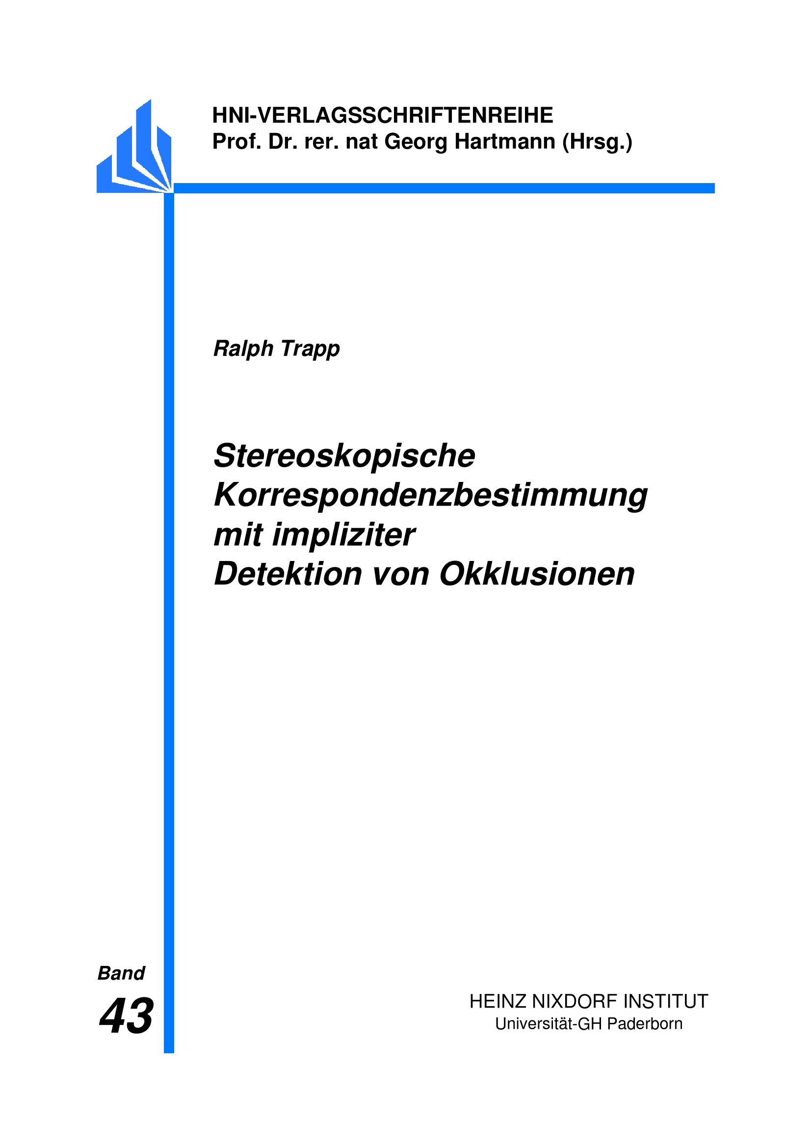 Stereoskopische Korrespondenzbestimmung mit impliziter Detektion von Okklusionen / von Dipl.-Ing. Ralph Trapp aus Winterberg. Referent: Prof. Dr. rer. nat Georg Hartmann, Korreferent: Prof. Dr.-Ing. Ulrich Rückert