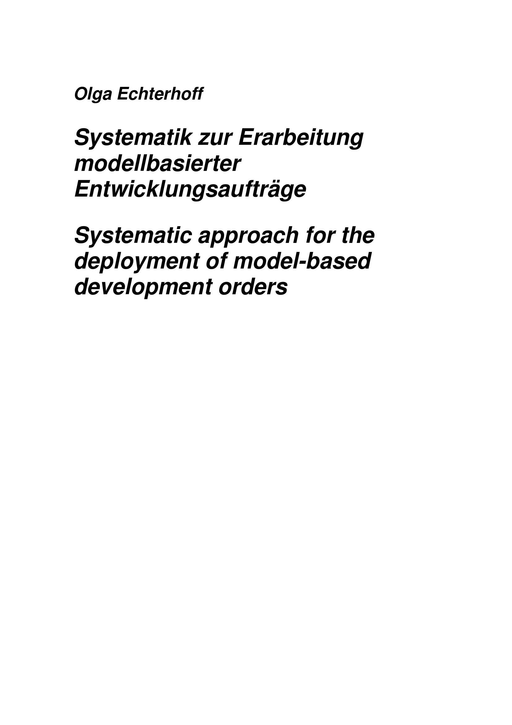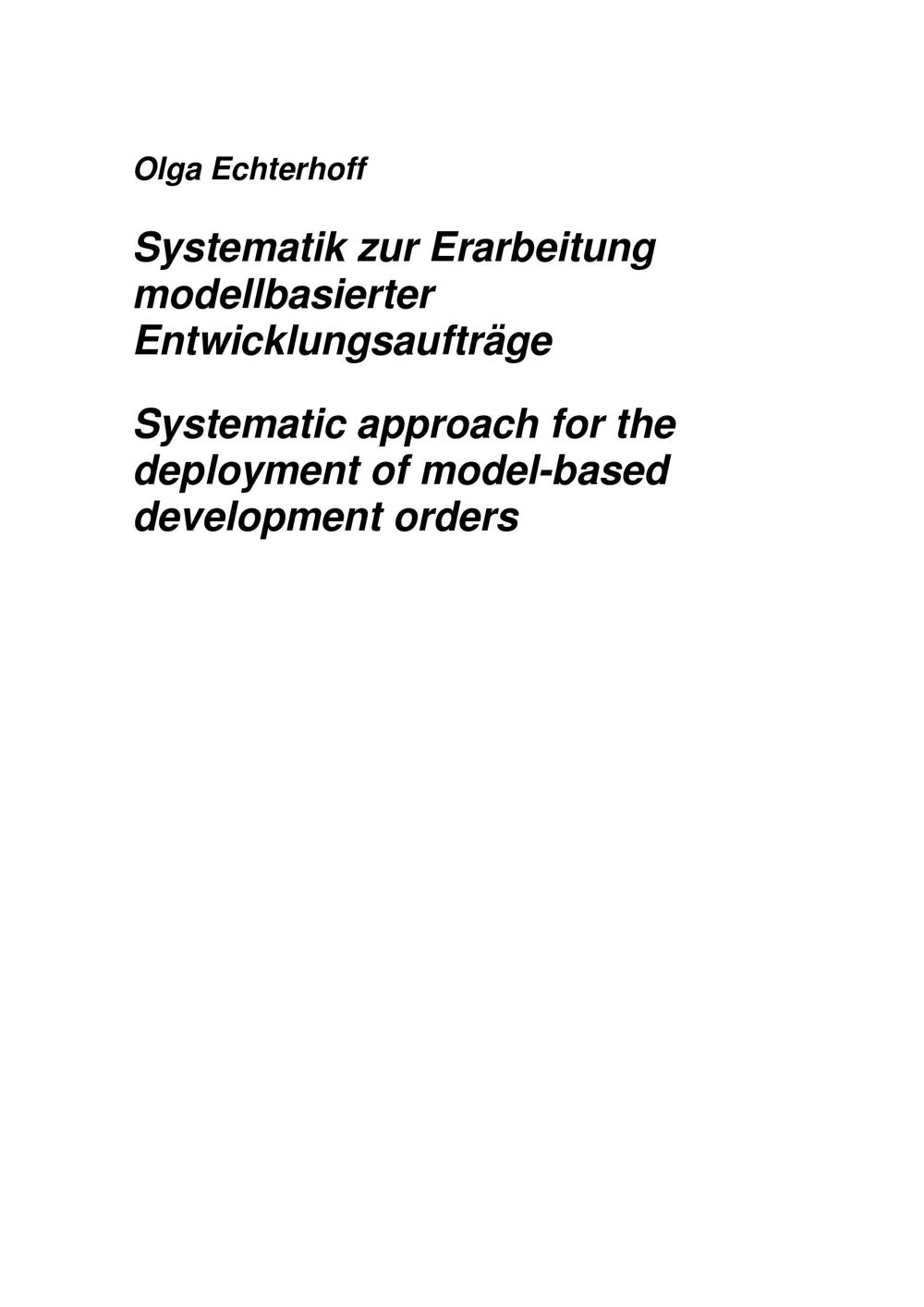 Systematik zur Erarbeitung modellbasierter Entwicklungsaufträge / von Olga Echterhoff ; Referent: Prof. Dr.-Ing. Jürgen Gausemeier, Korreferent: Prof. Dr.-Ing. Detmar Zimmer