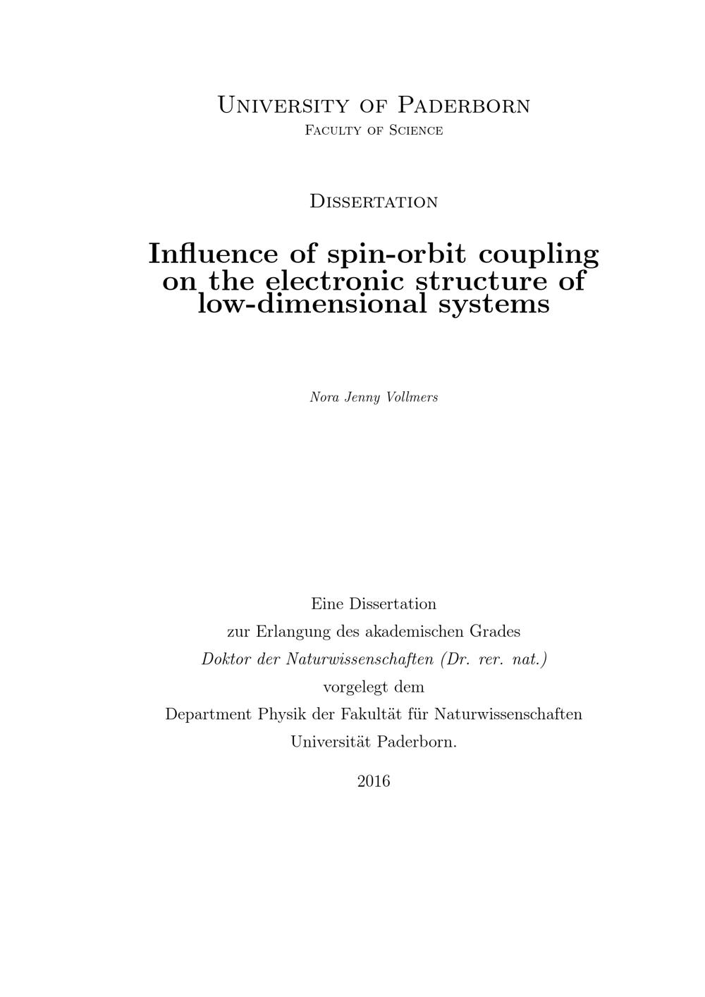 Influence of spin-orbit coupling on the electronic structure of low-dimensional systems / Nora Jenny Vollmers