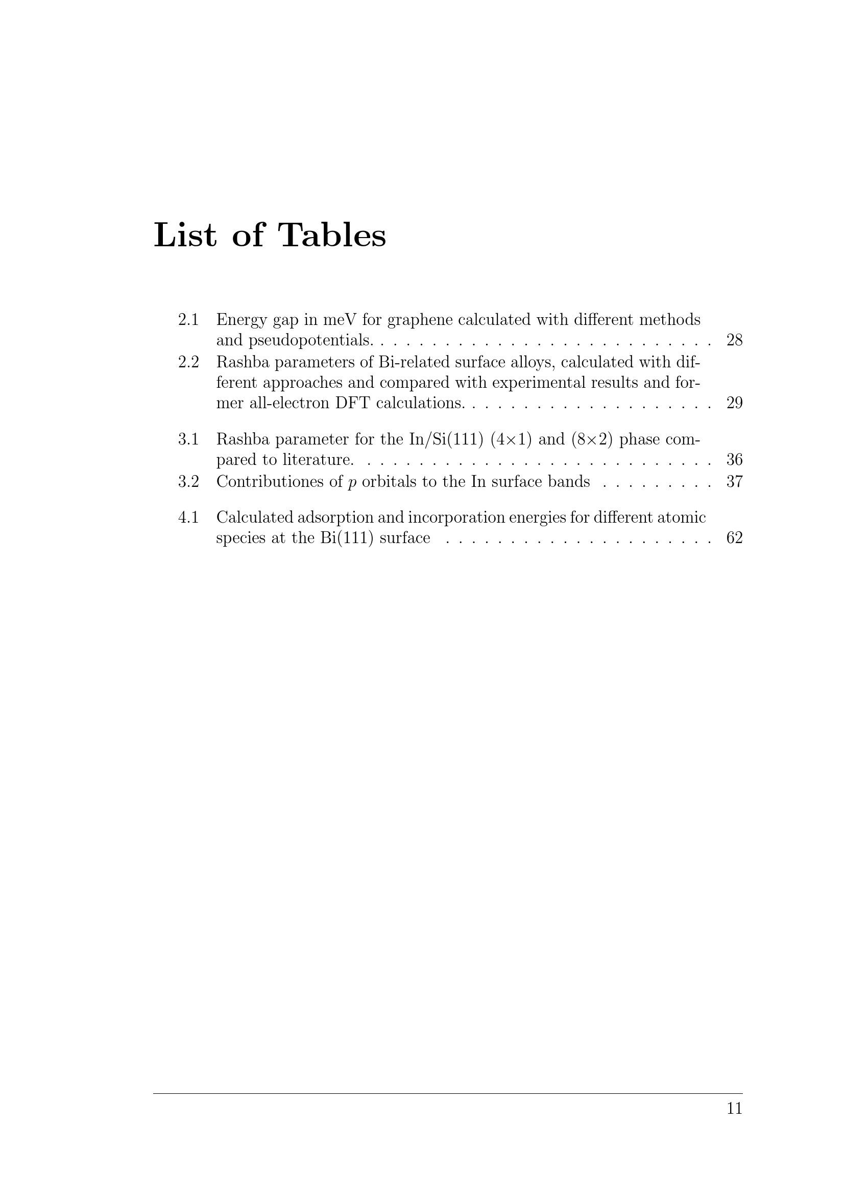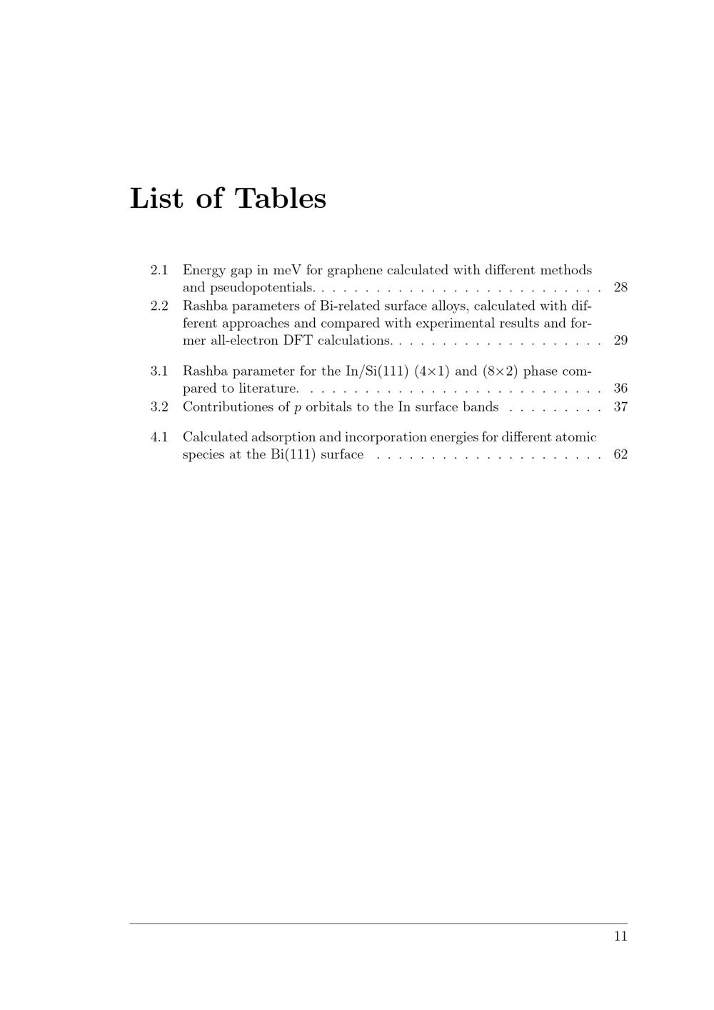List of Tables