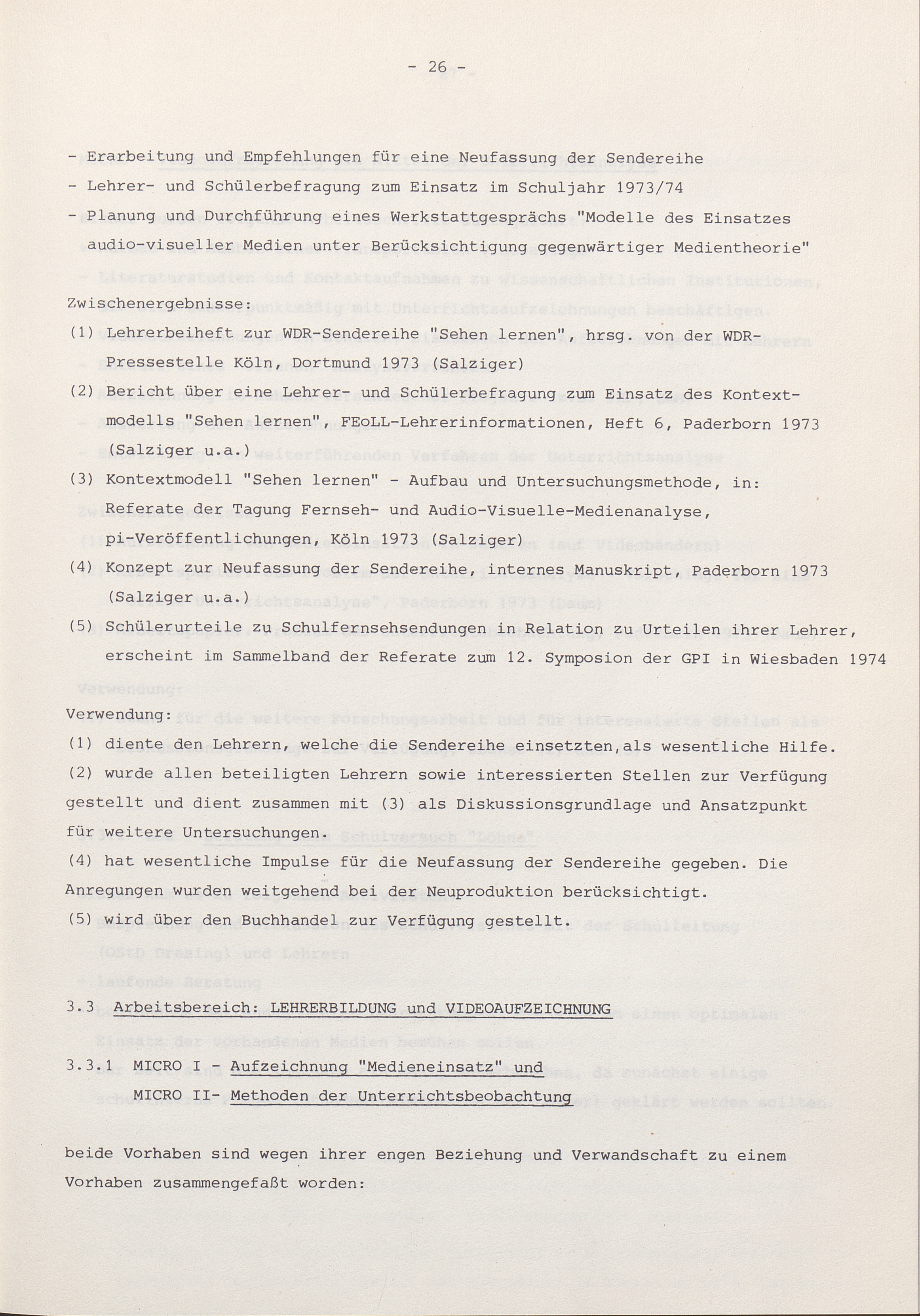 3.3 Arbeitsbereich: Lehrerbildung und Videoaufzeichnung