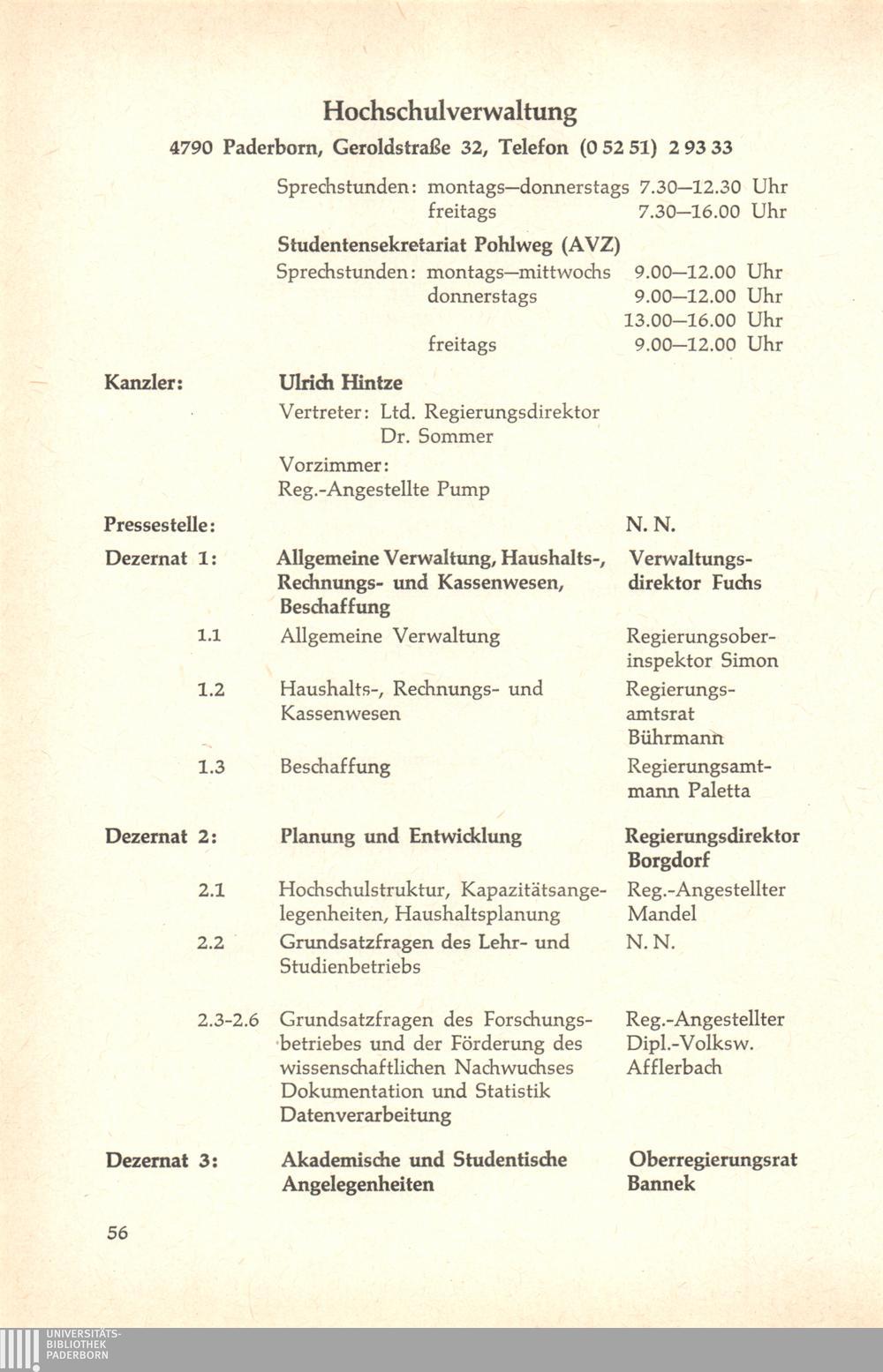 Personal- und Vorlesungsverzeichnis für die Gesamthochschule Paderborn