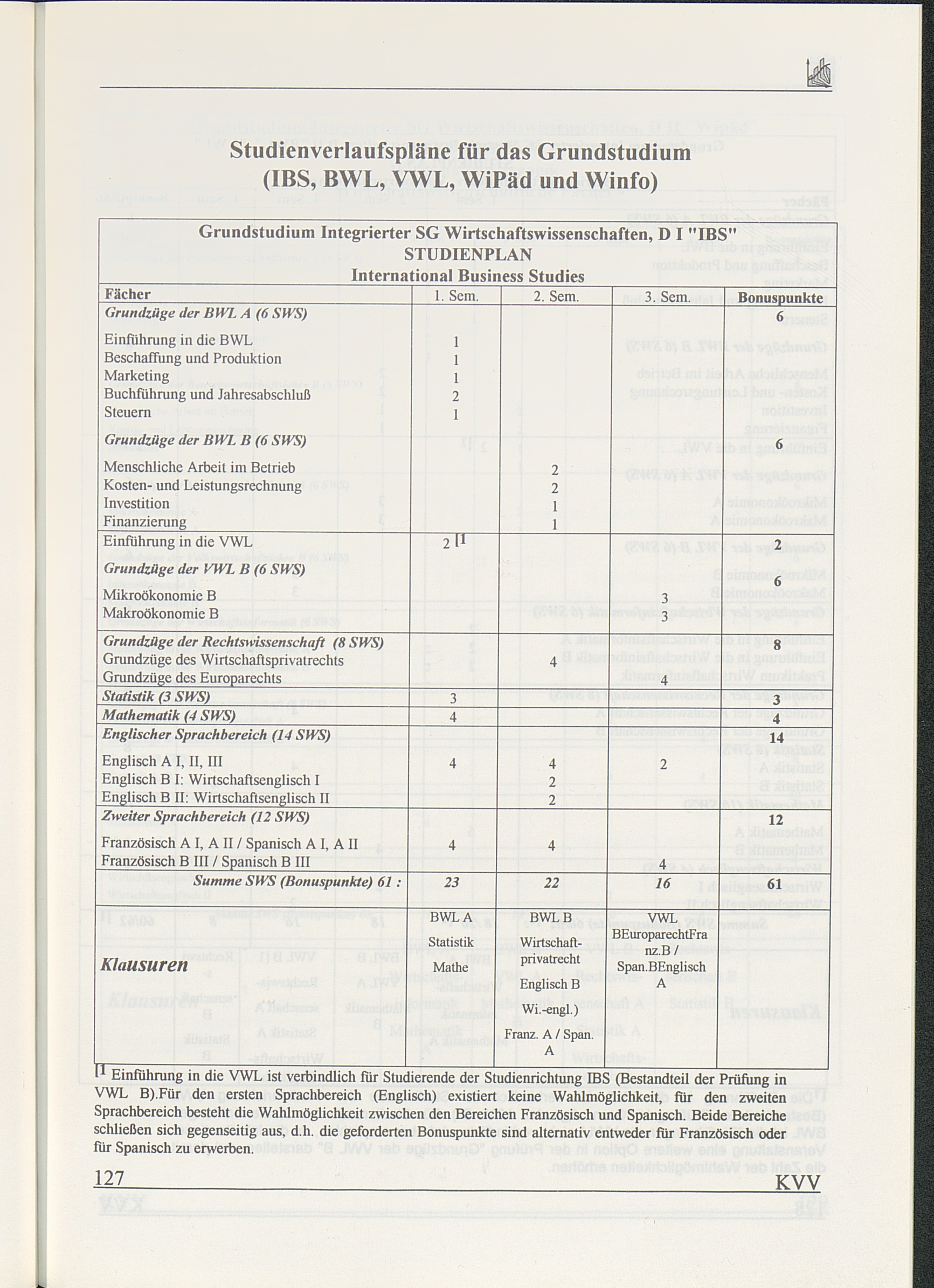 Studienverlaufspläne für das Grundstudium IBS, BWL, VWL, WiPäd und Winfo