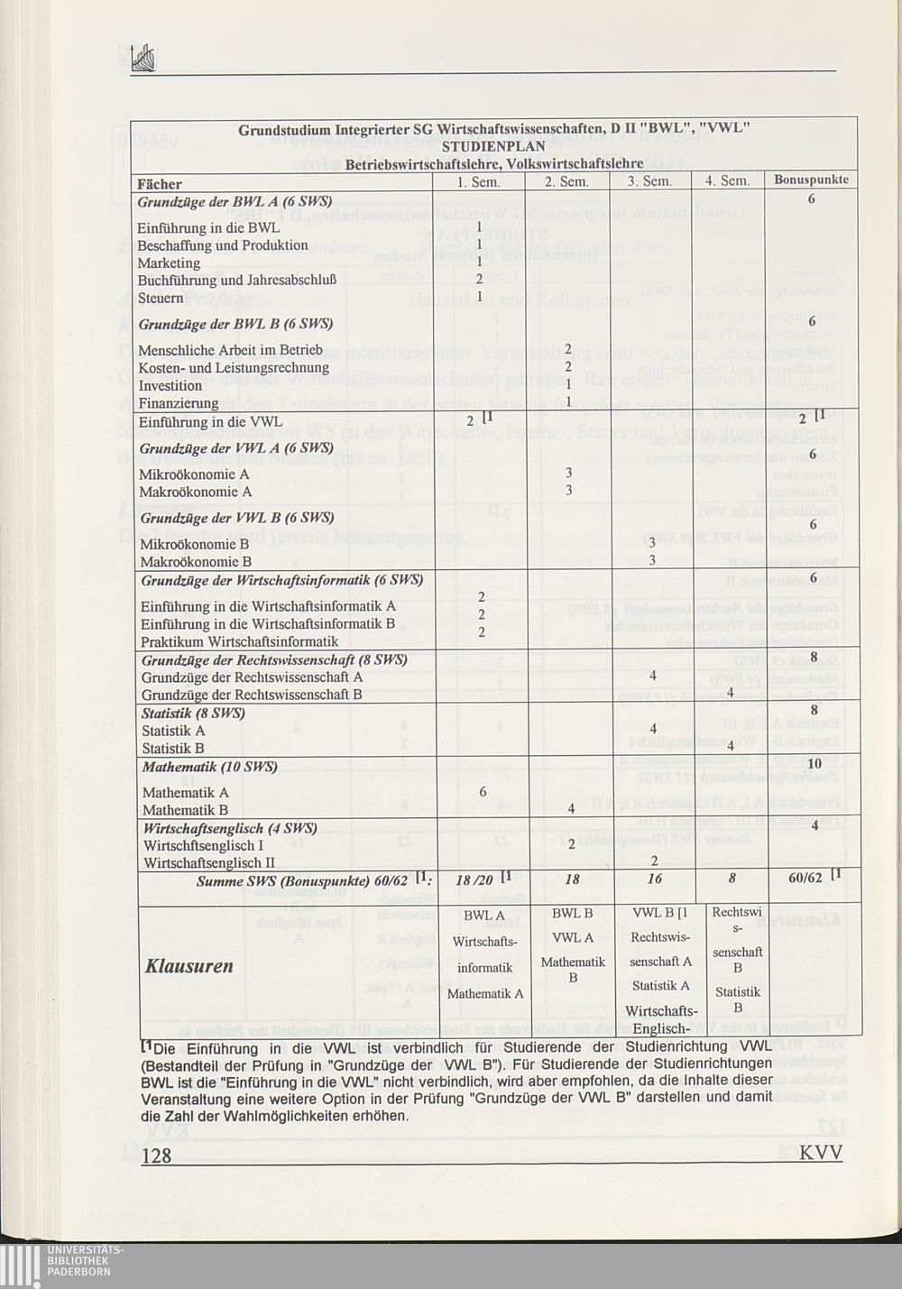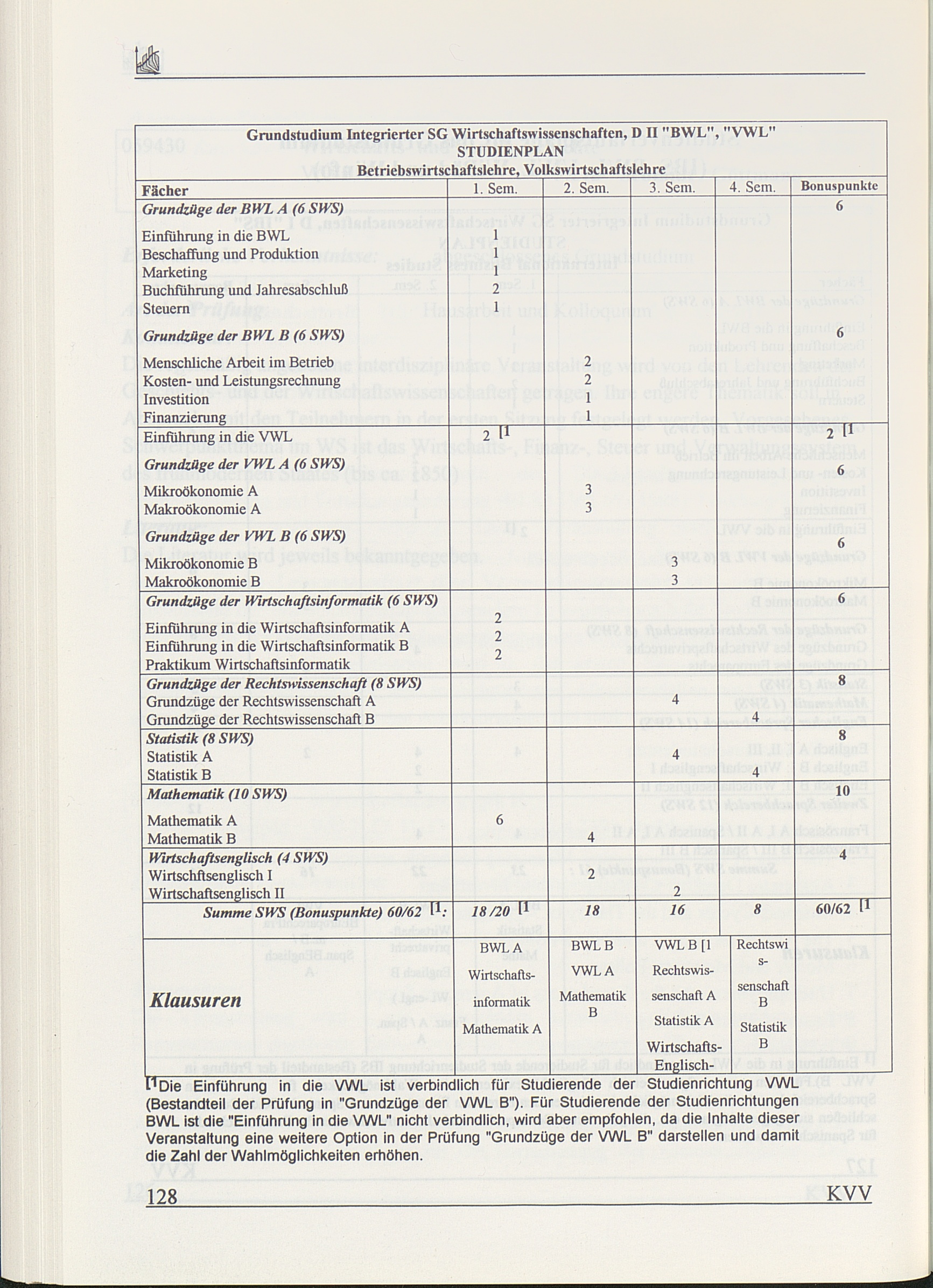 Studienverlaufspläne für das Grundstudium IBS, BWL, VWL, WiPäd und Winfo