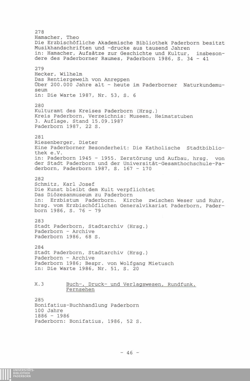 Paderborner Bibliographie ...