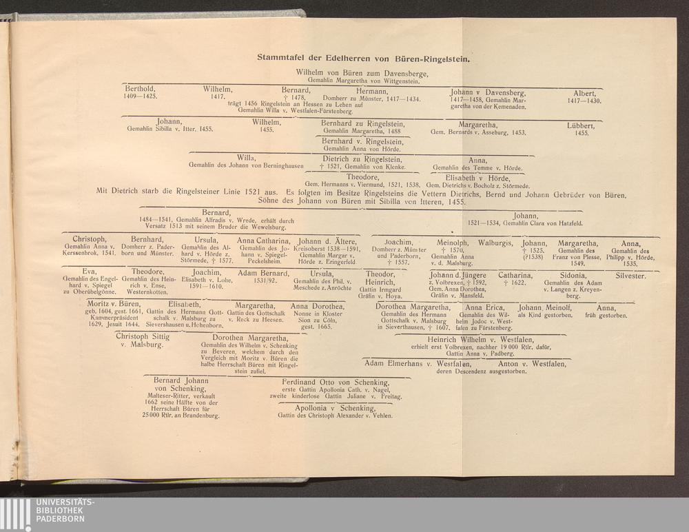 Stammtafel der Edelherren von Büren-Ringelstein.