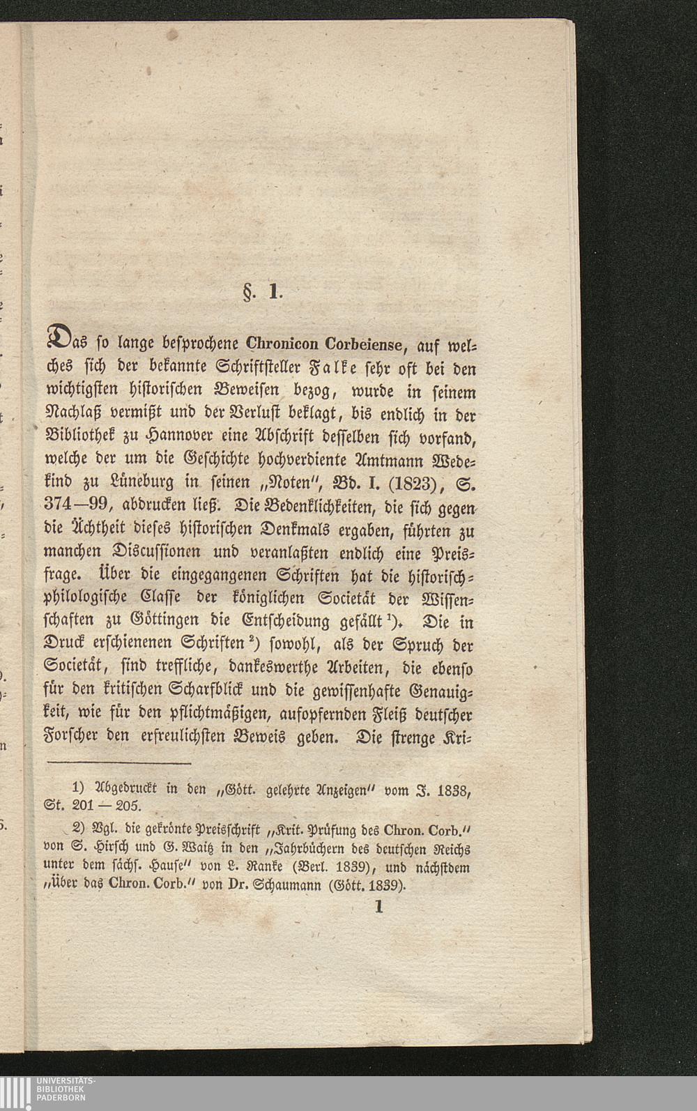 § 1. Einleitung. Preisfrage über die Ächtheit des Chronikon. Dasselbe für unächt,[...]