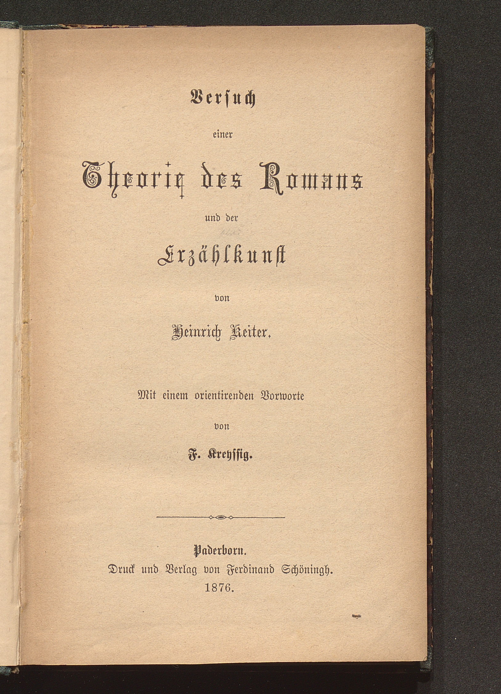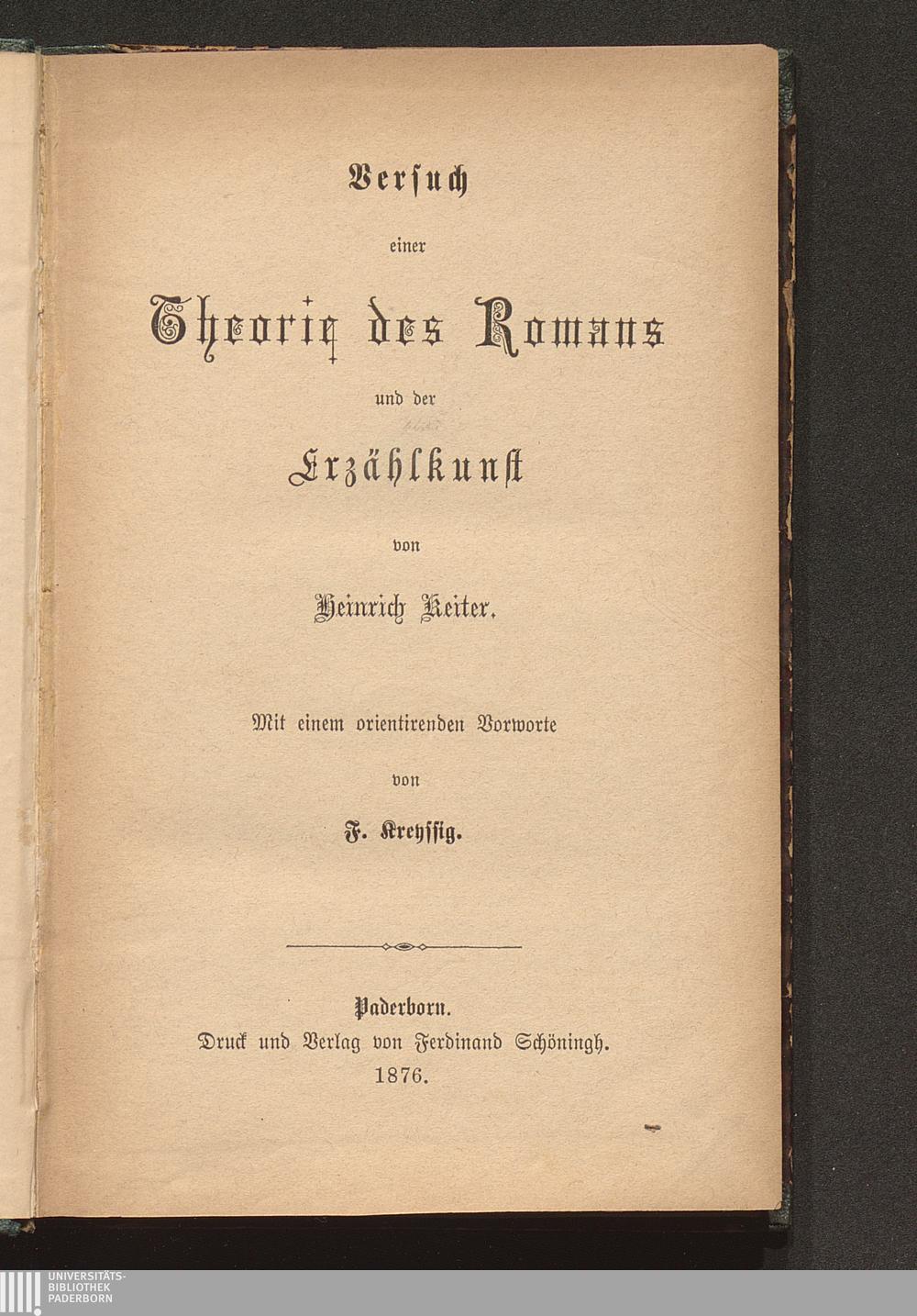 Versuch einer Theorie des Romans und der Erzählkunst / von Heinrich Keiter. Mitt einem orientirenden Vorworte von F. Kreyssig