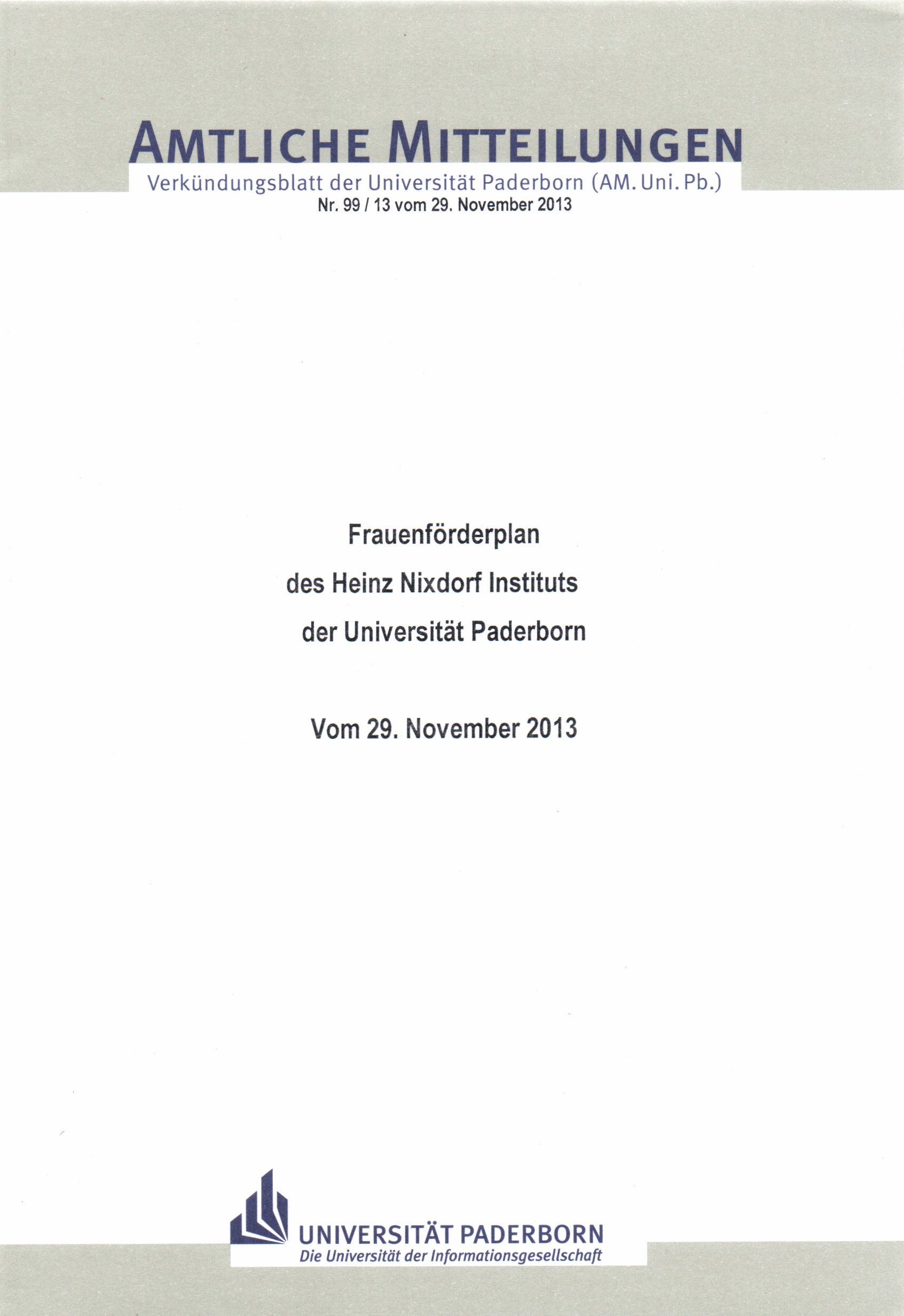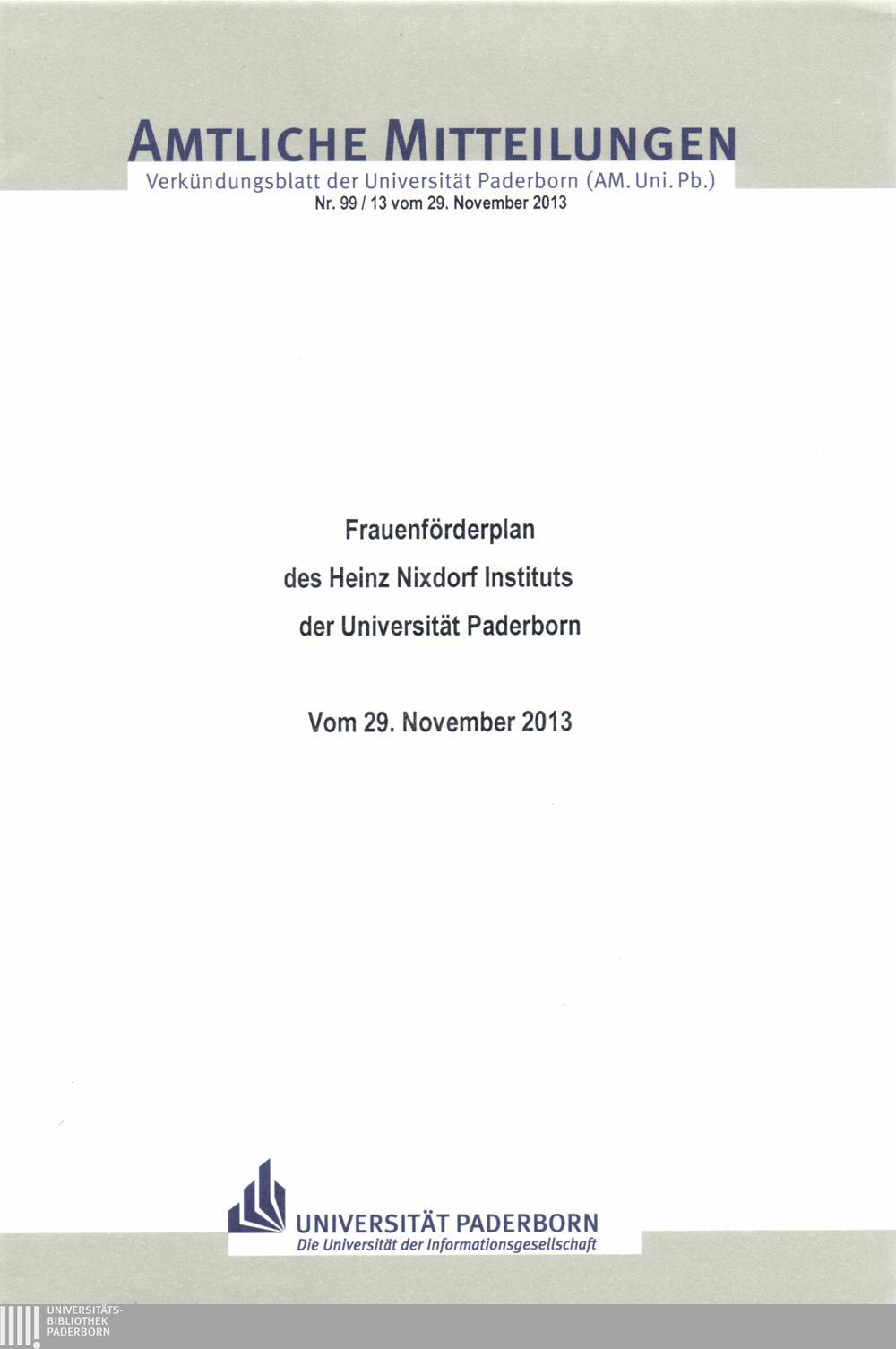Frauenförderplan des Heinz-Nixdorf-Instituts der Universität Paderborn : vom 29. November 2013