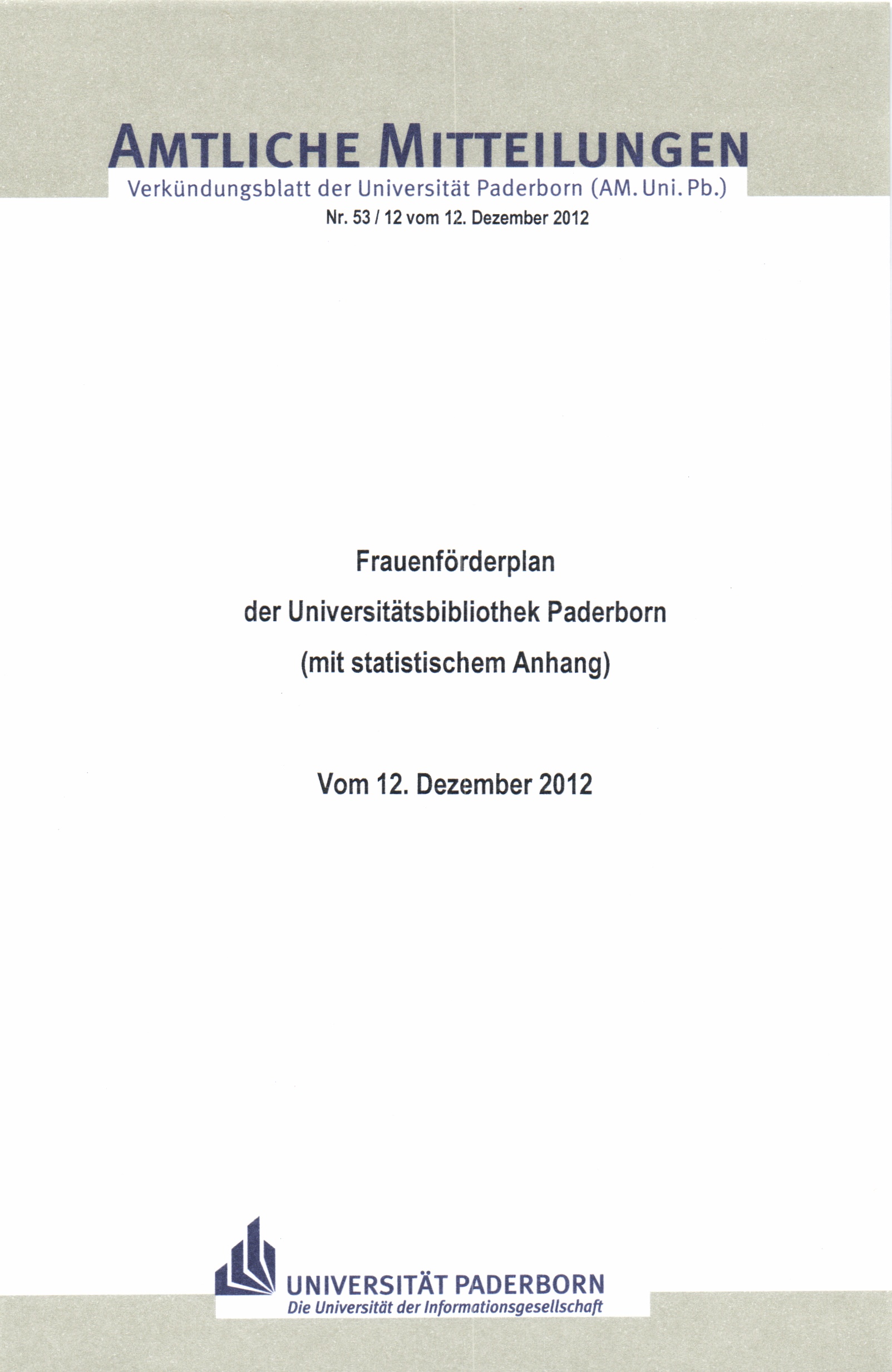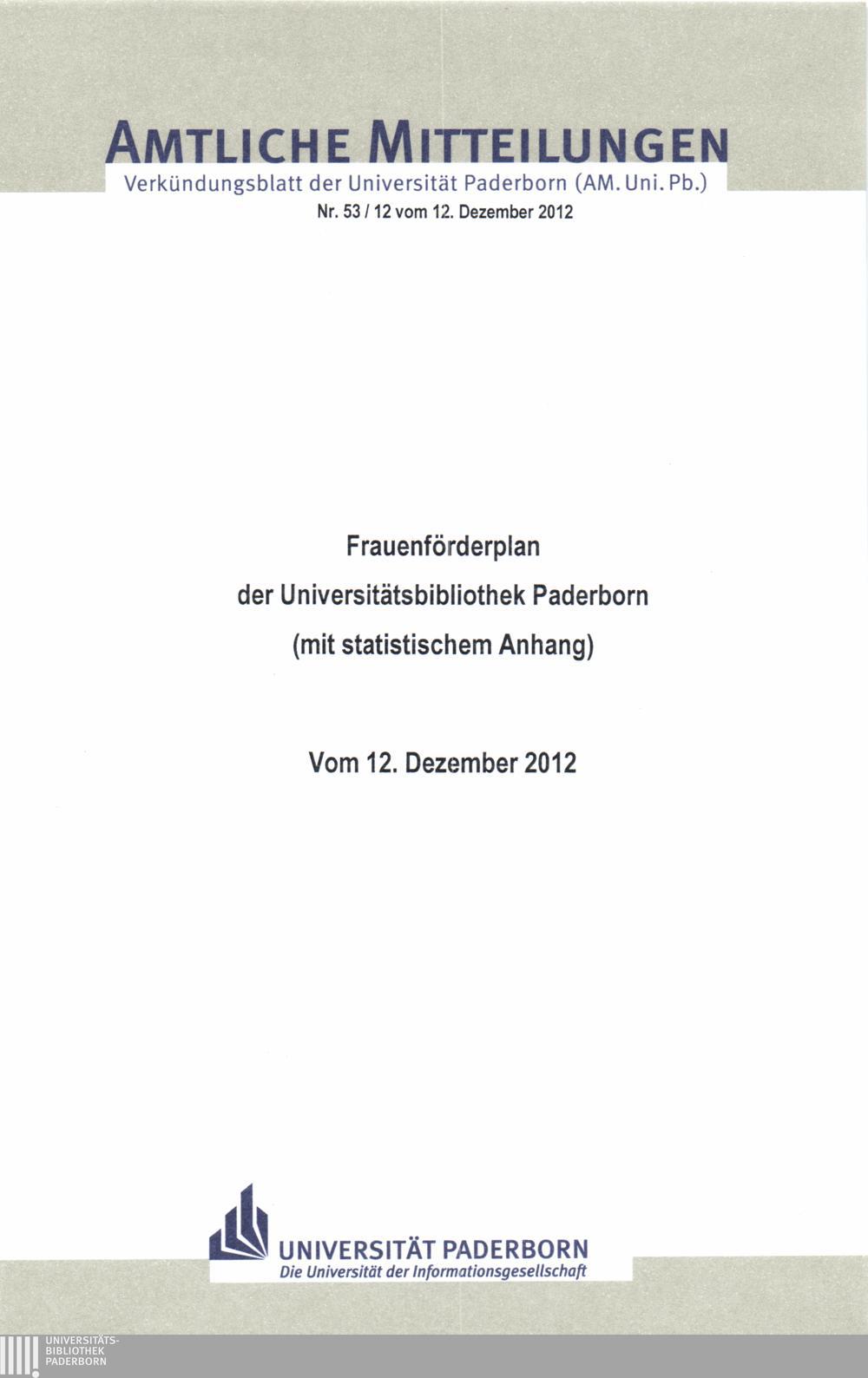 Frauenförderplan der Universitätsbibliothek Paderborn : (mit statistischem Anhang) ; vom 12. Dezember 2012
