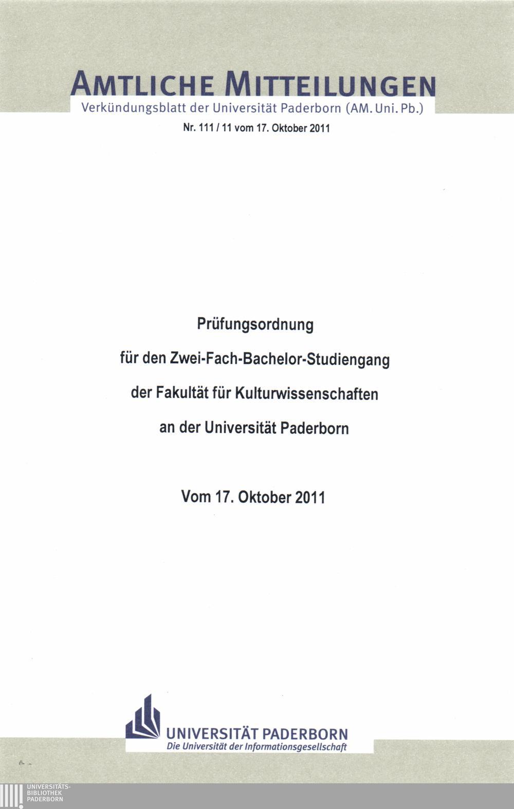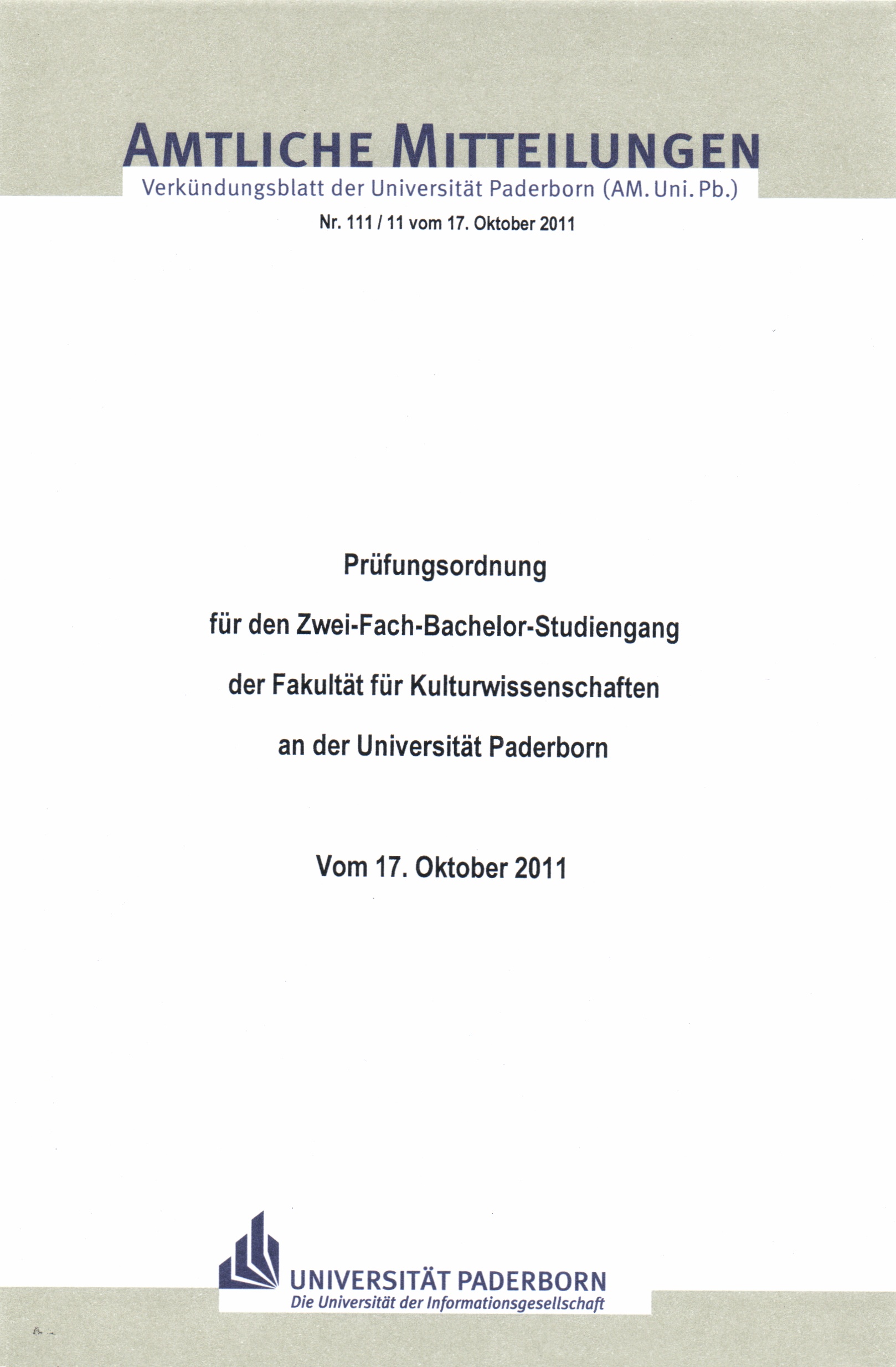 Prüfungsordnung für den Zwei-Fach-Bachelor-Studiengang der Fakultät für Kulturwissenschaften an der Universität Paderborn : vom 17. Oktober 2011