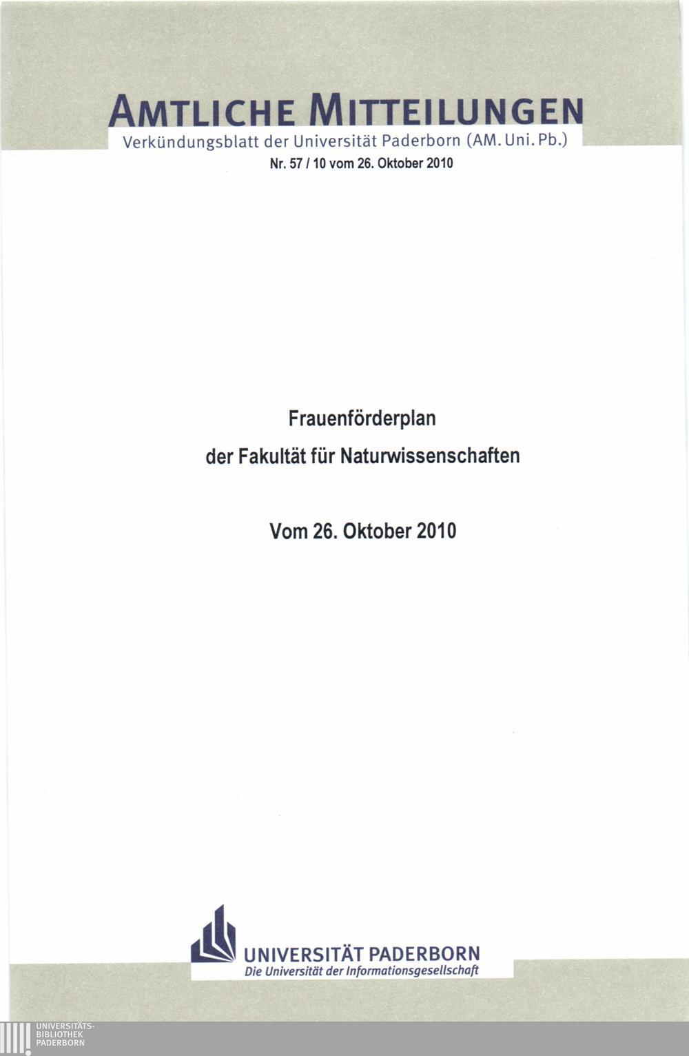 Frauenförderplan der Fakultät für Naturwissenschaften : vom 26. Oktober 2010
