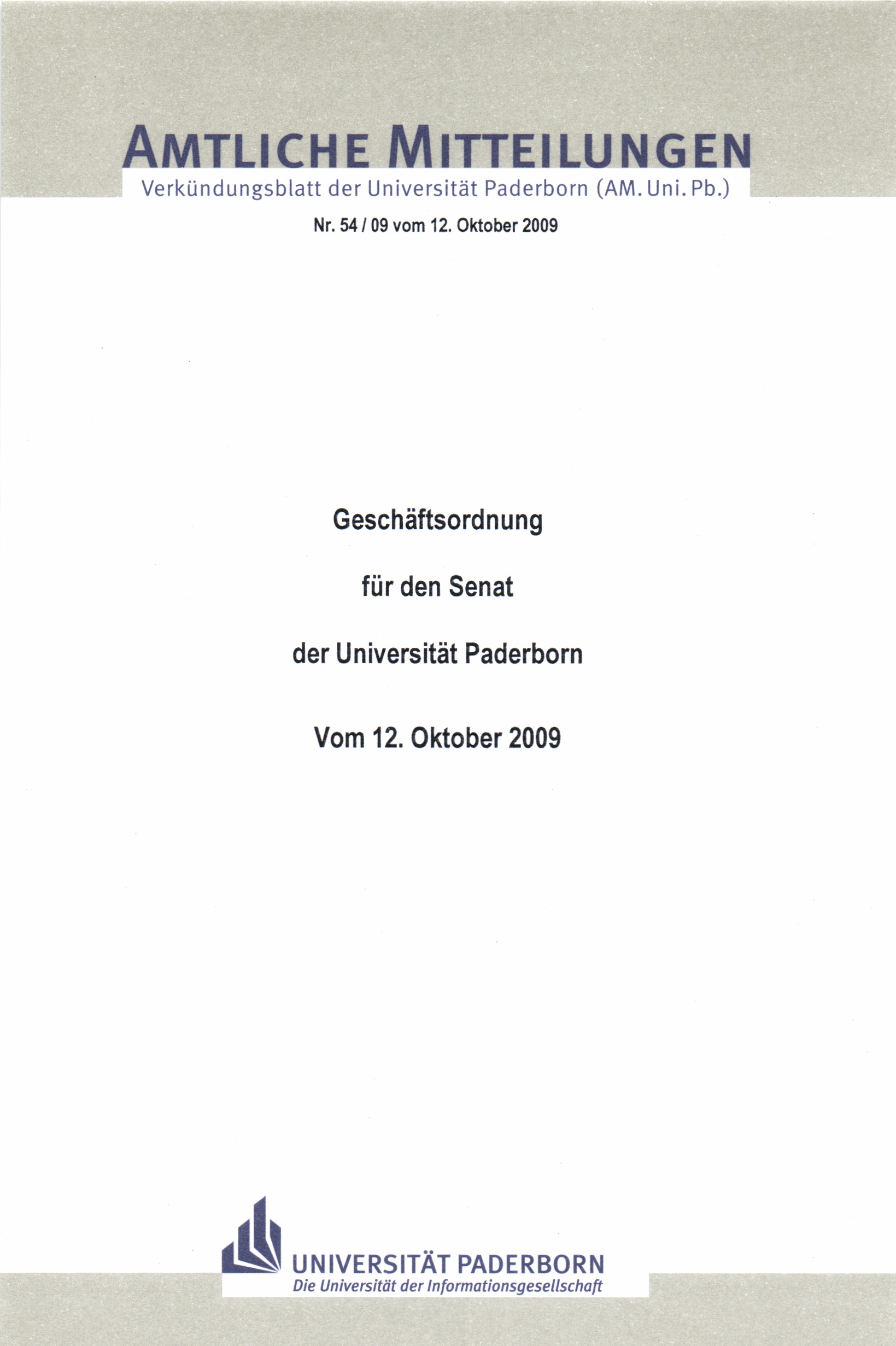 Geschäftsordnung für den Senat der Universität Paderborn : vom 12. Oktober 2009