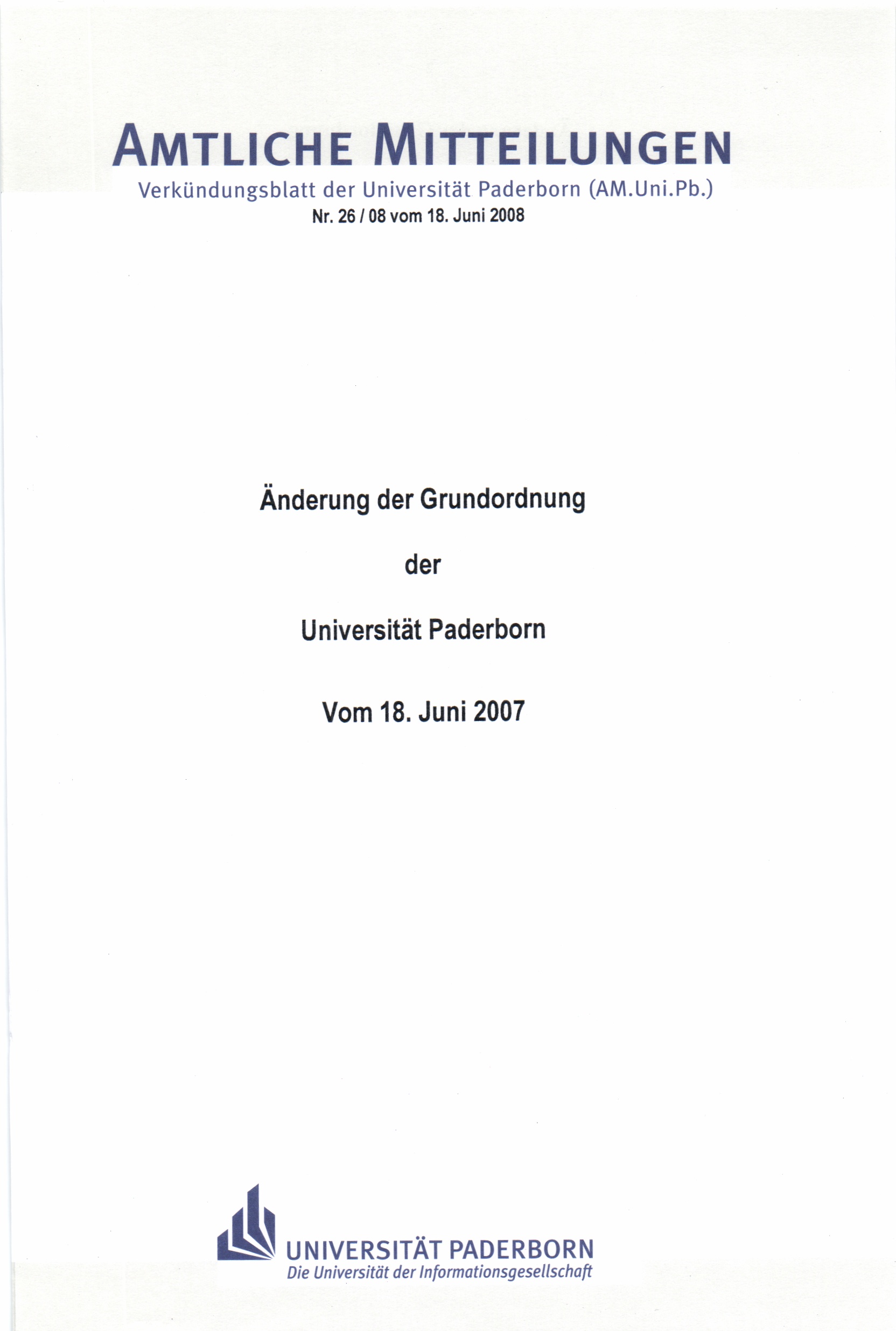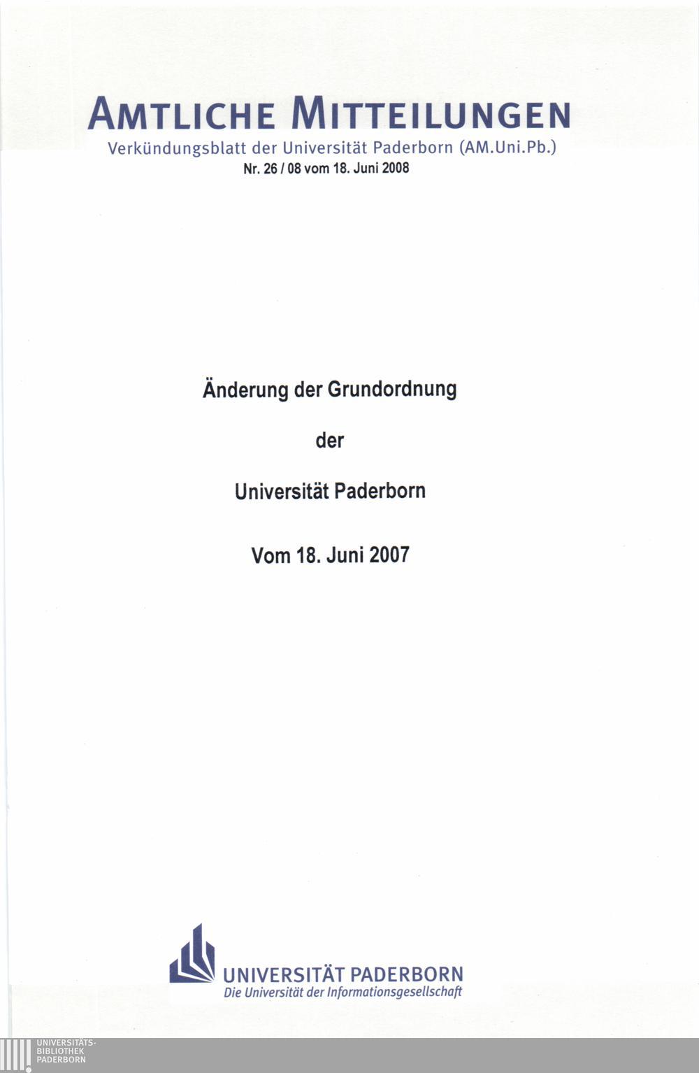 Änderung der Grundordnung der Universität Paderborn : vom 18. Juni 2008