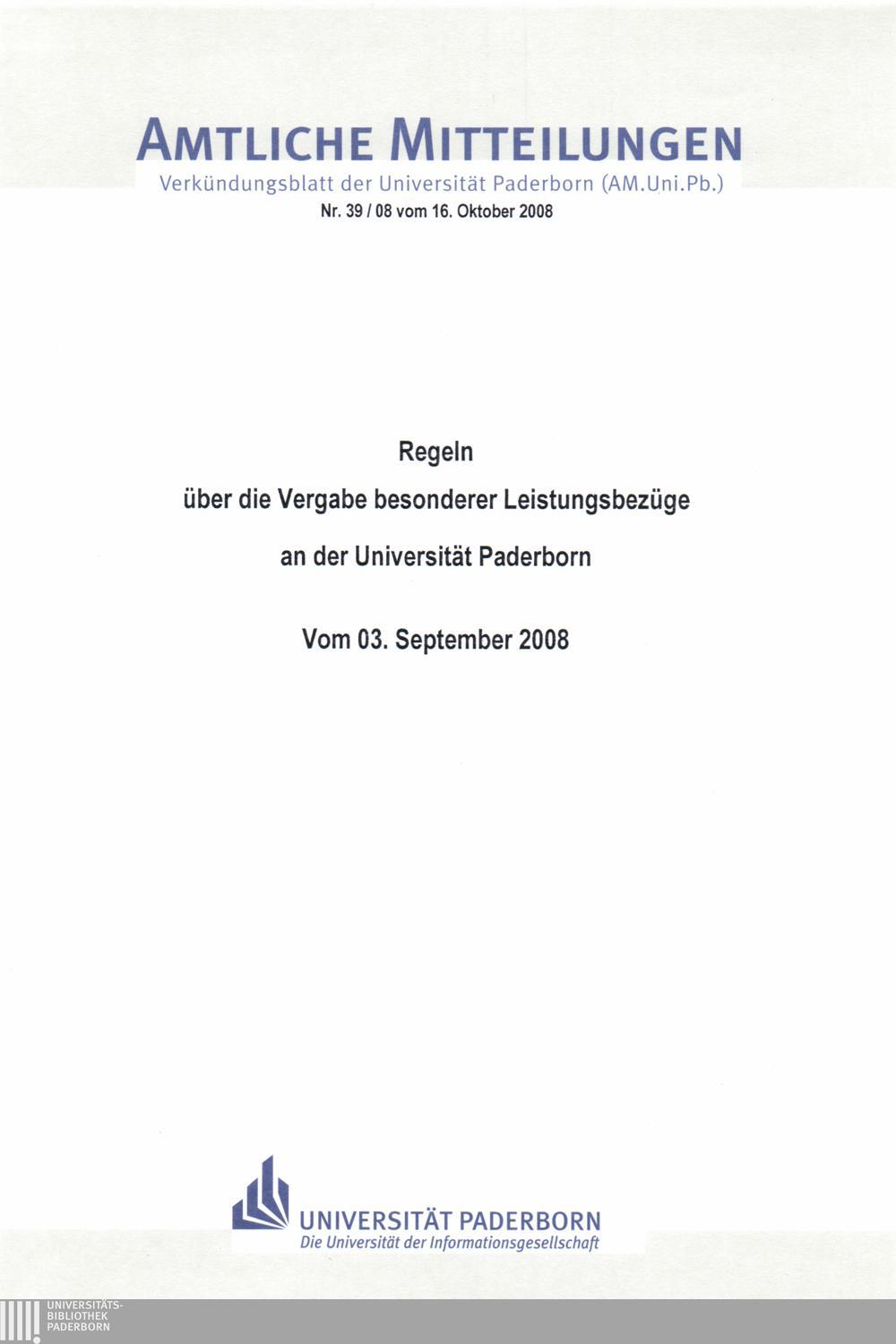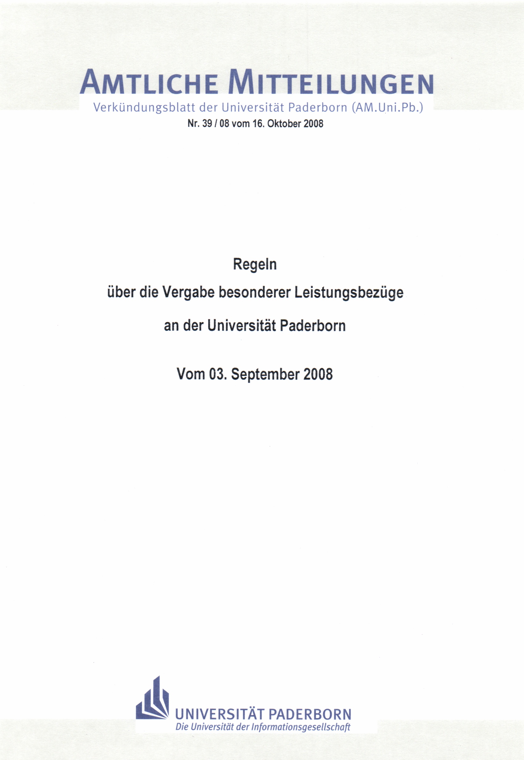 Regeln über die Vergabe besonderer Leistungsbezüge an der Universität Paderborn : vom 03. September 2008