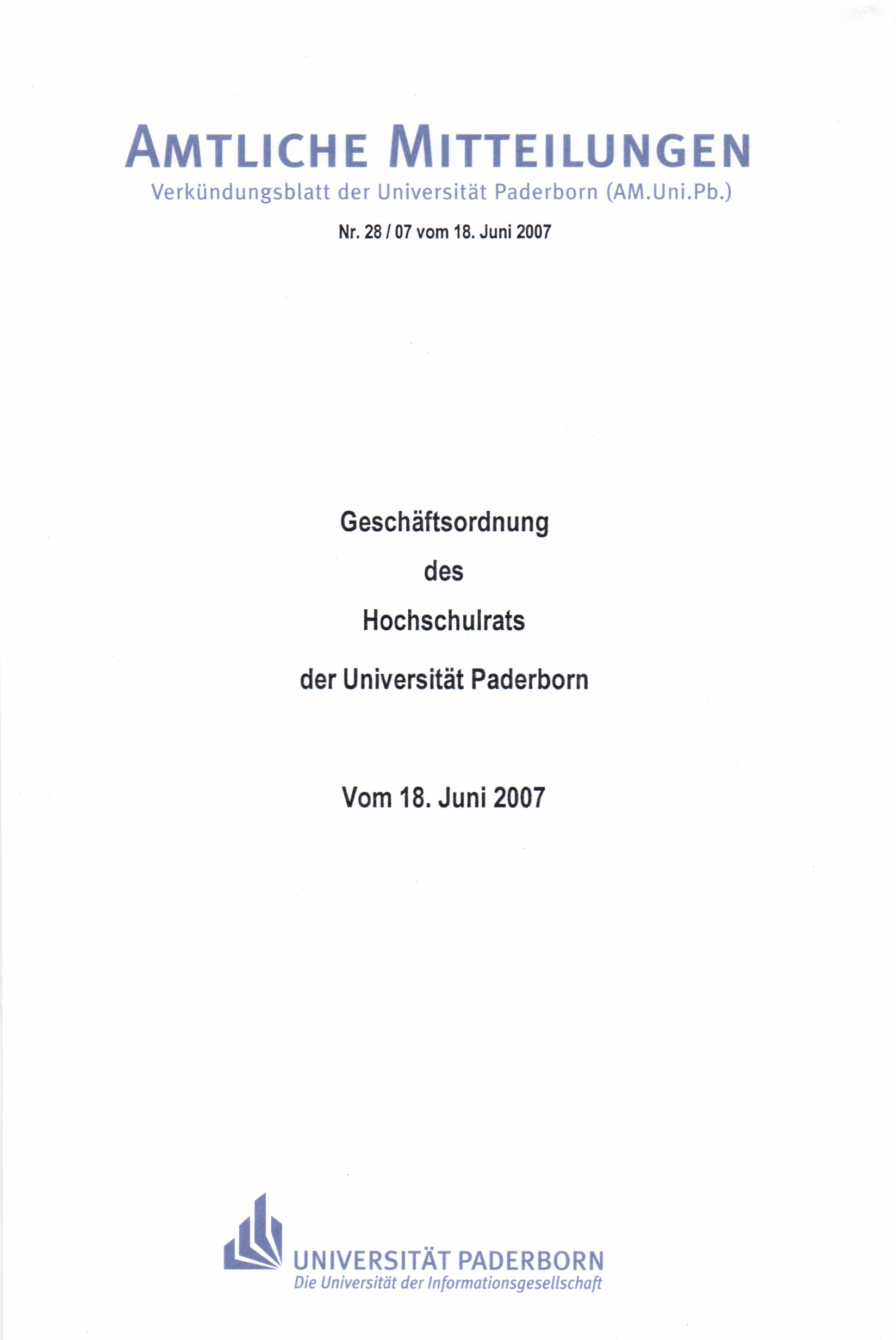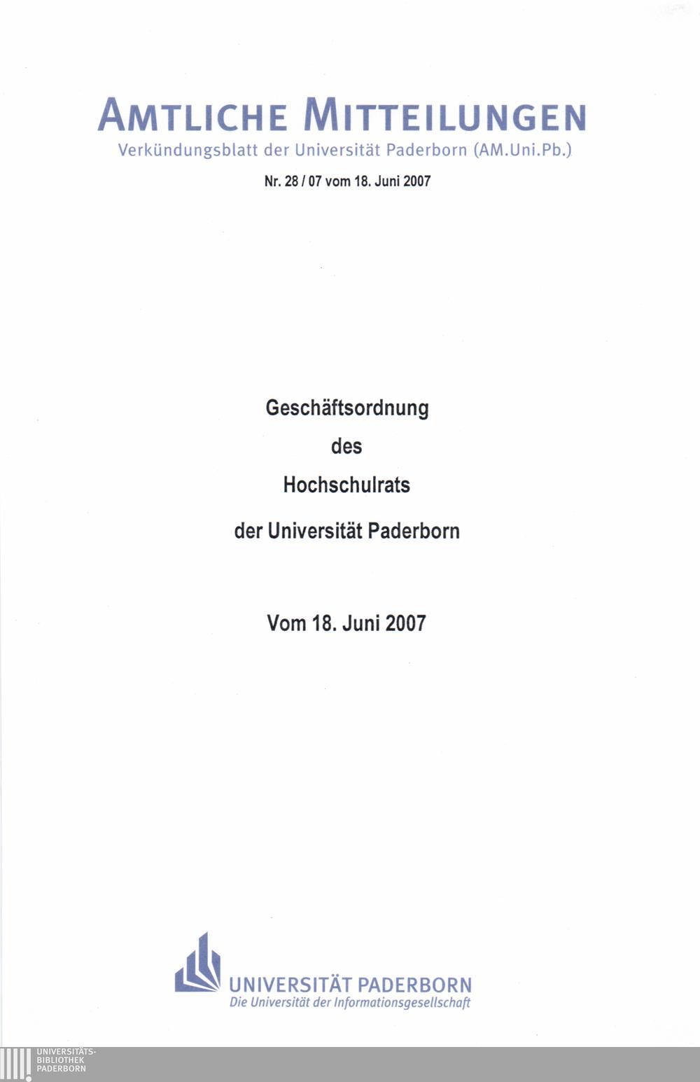 Geschäftsordnung des Hochschulrats der Universität Paderborn : vom 18. Juni 2007