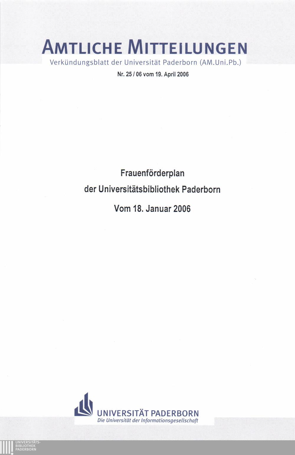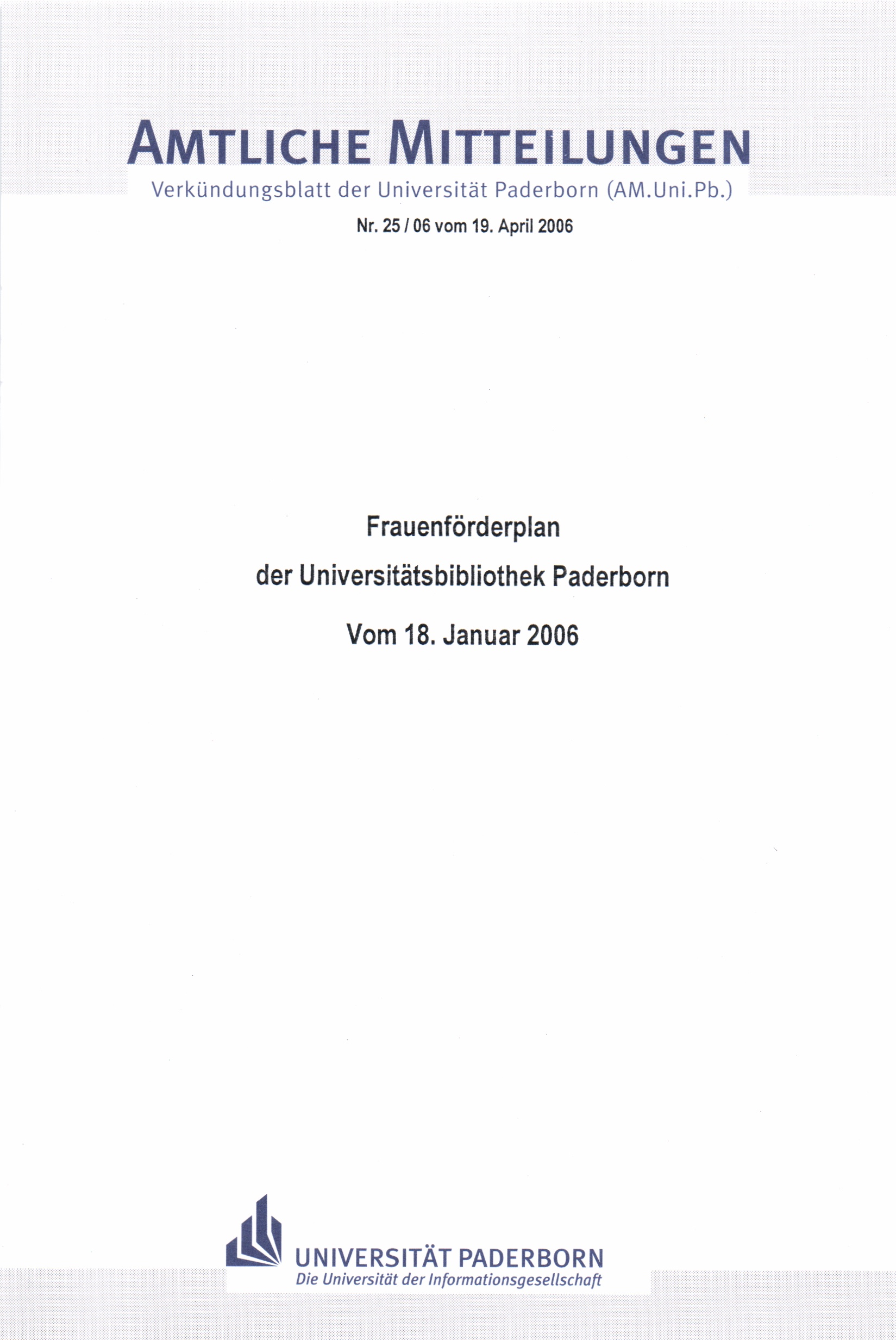 Frauenförderplan der Universitätsbibliothek Paderborn : (mit statistischem Anhang) ; vom 18. Januar 2006