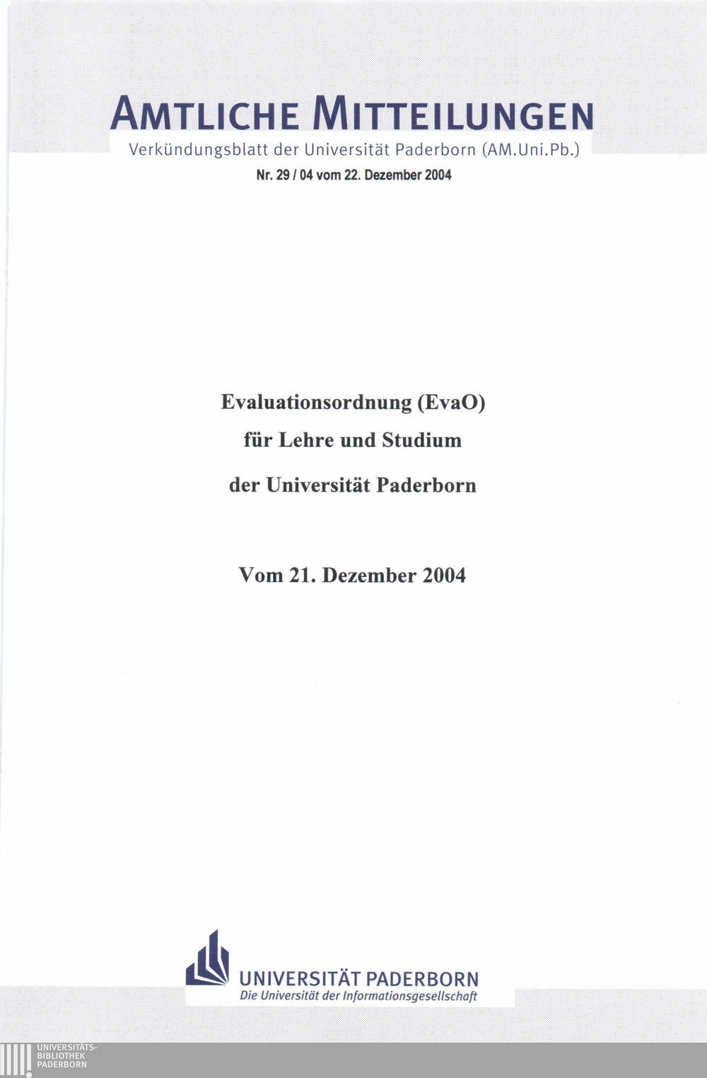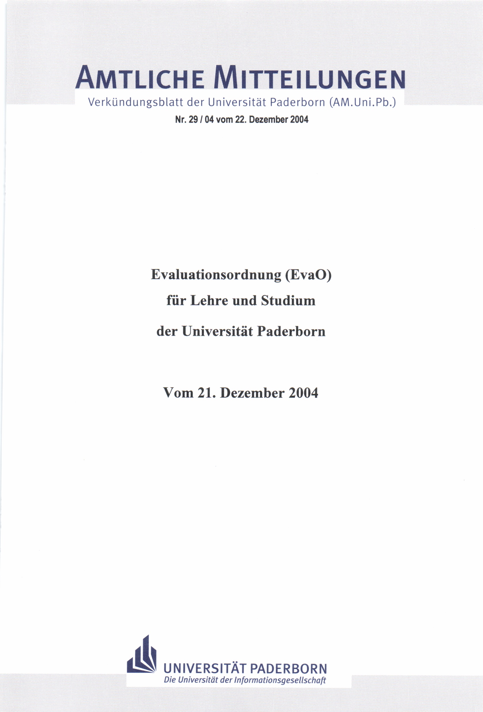 Evaluationsordnung (EvaO) für Lehre und Studium der Universität Paderborn : vom 21. Dezember 2004