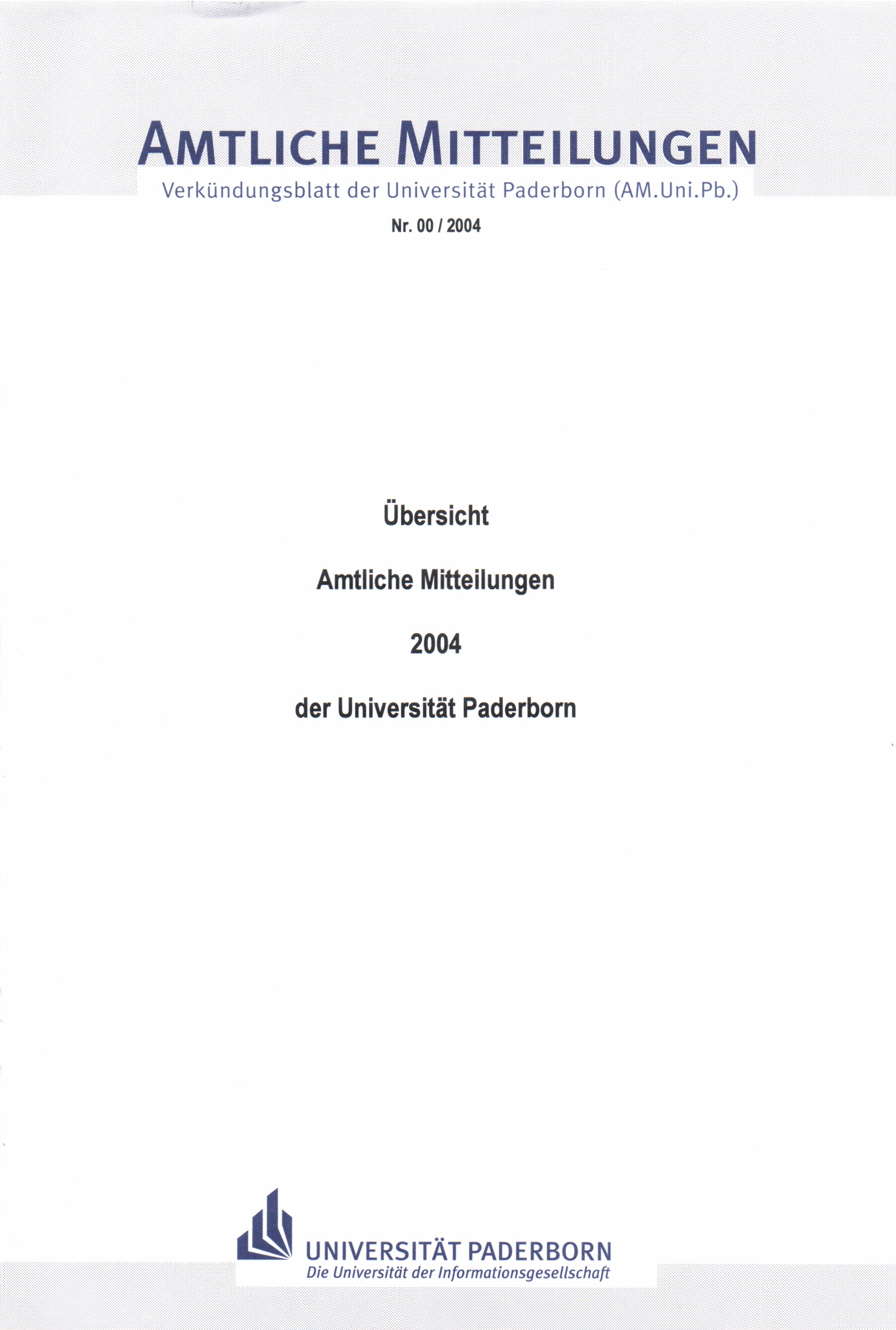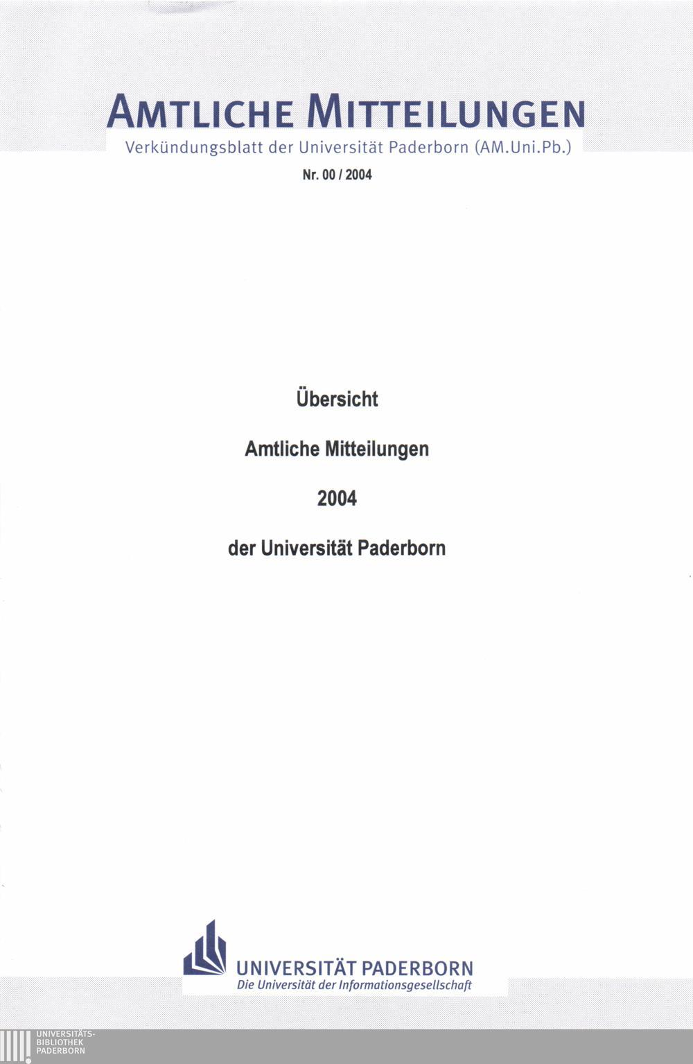 Übersicht Amtliche Mitteilungen 2004 der Universität Paderborn : [Verzeichnis der Amtlichen Mitteilungen der Universität Paderborn ; vom 1. Januar 2004 - 31. Dezember 2004]