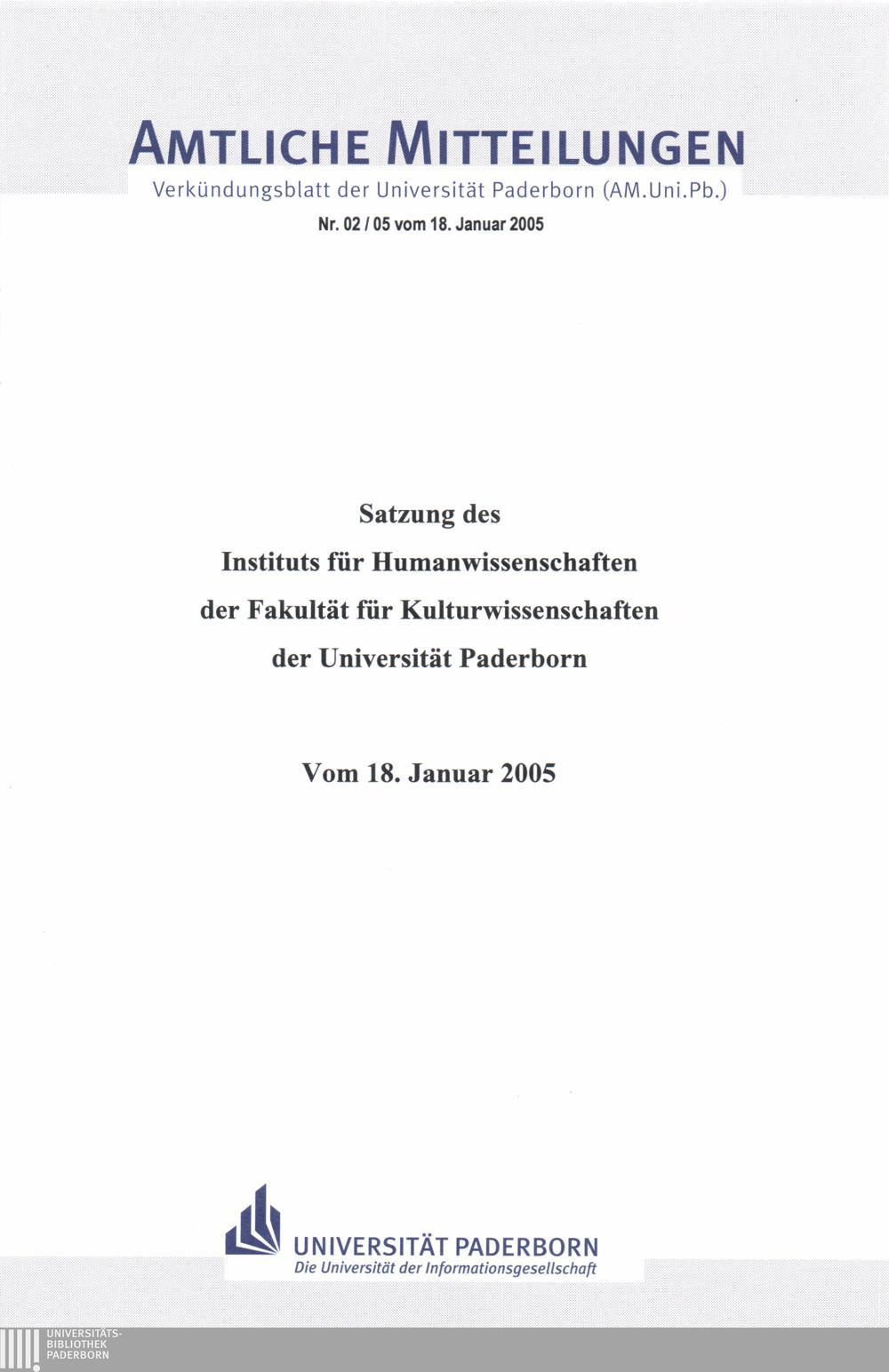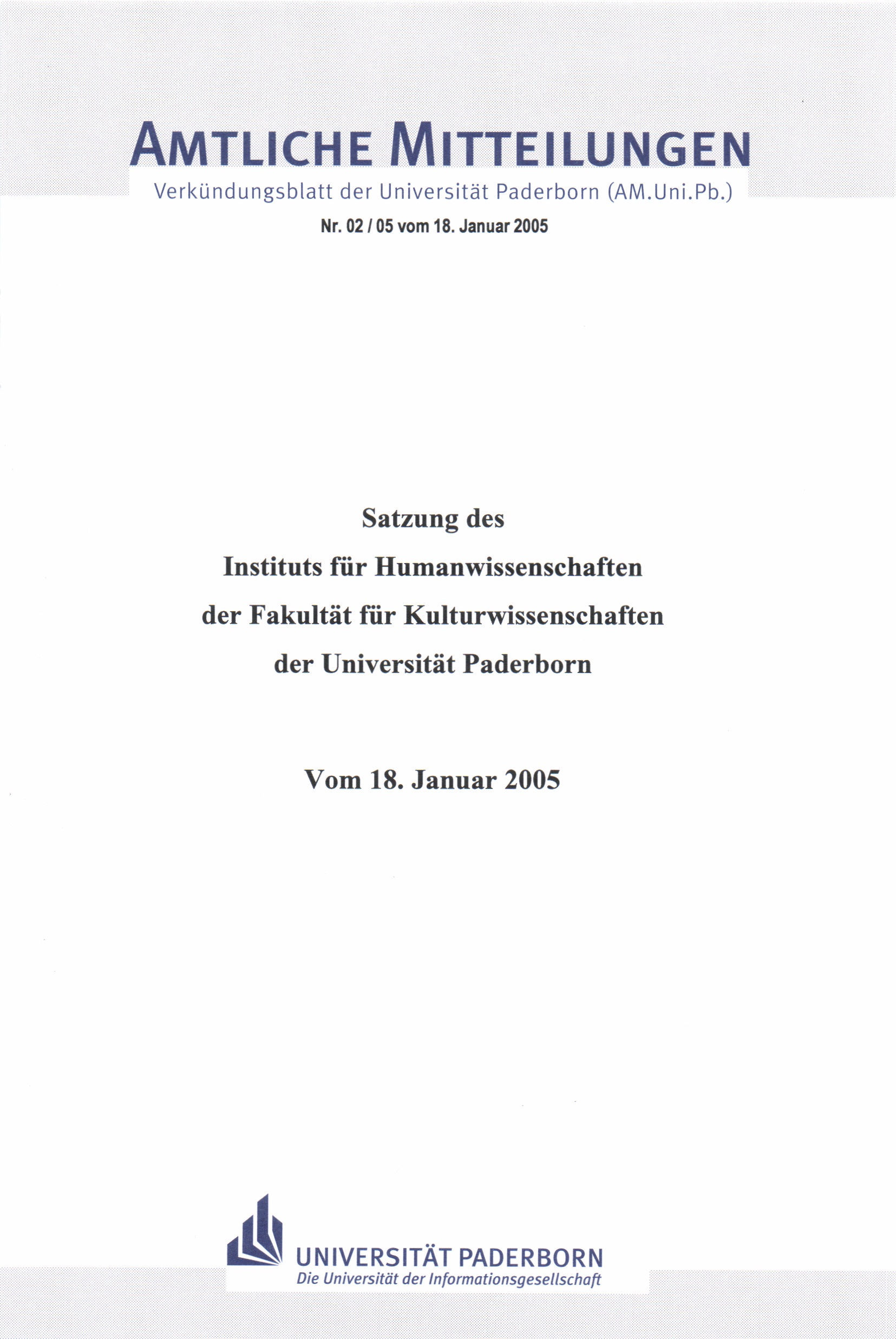 Satzung des Instituts für Humanwissenschaften der Fakultät für Kulturwissenschaften der Universität Paderborn : vom 18. Januar 2005