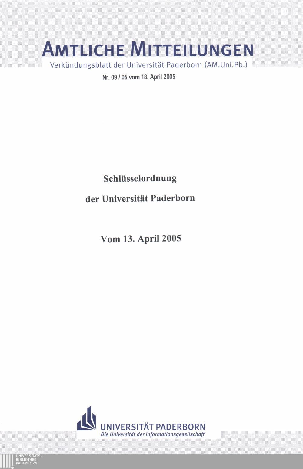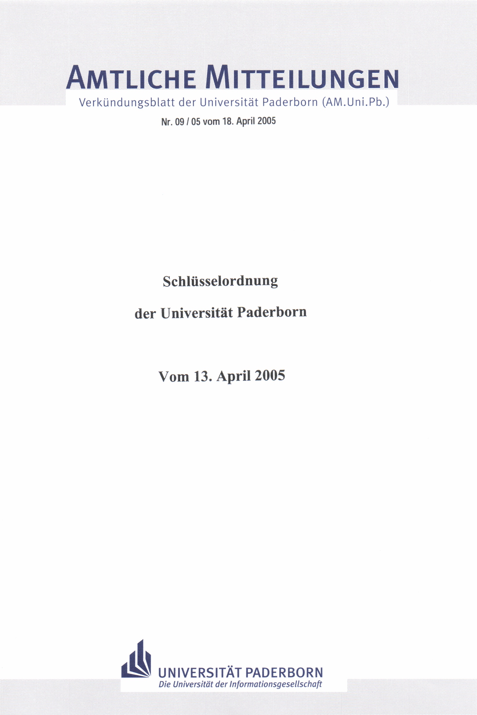 Schlüsselordnung der Universität Paderborn : vom 13. April 2005