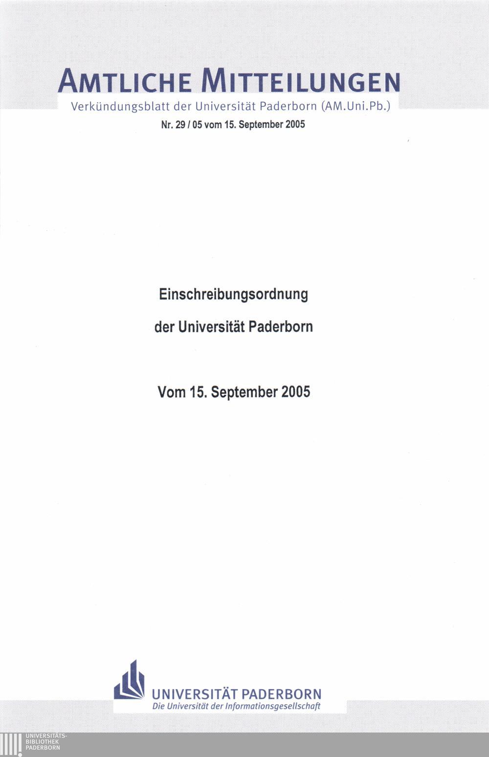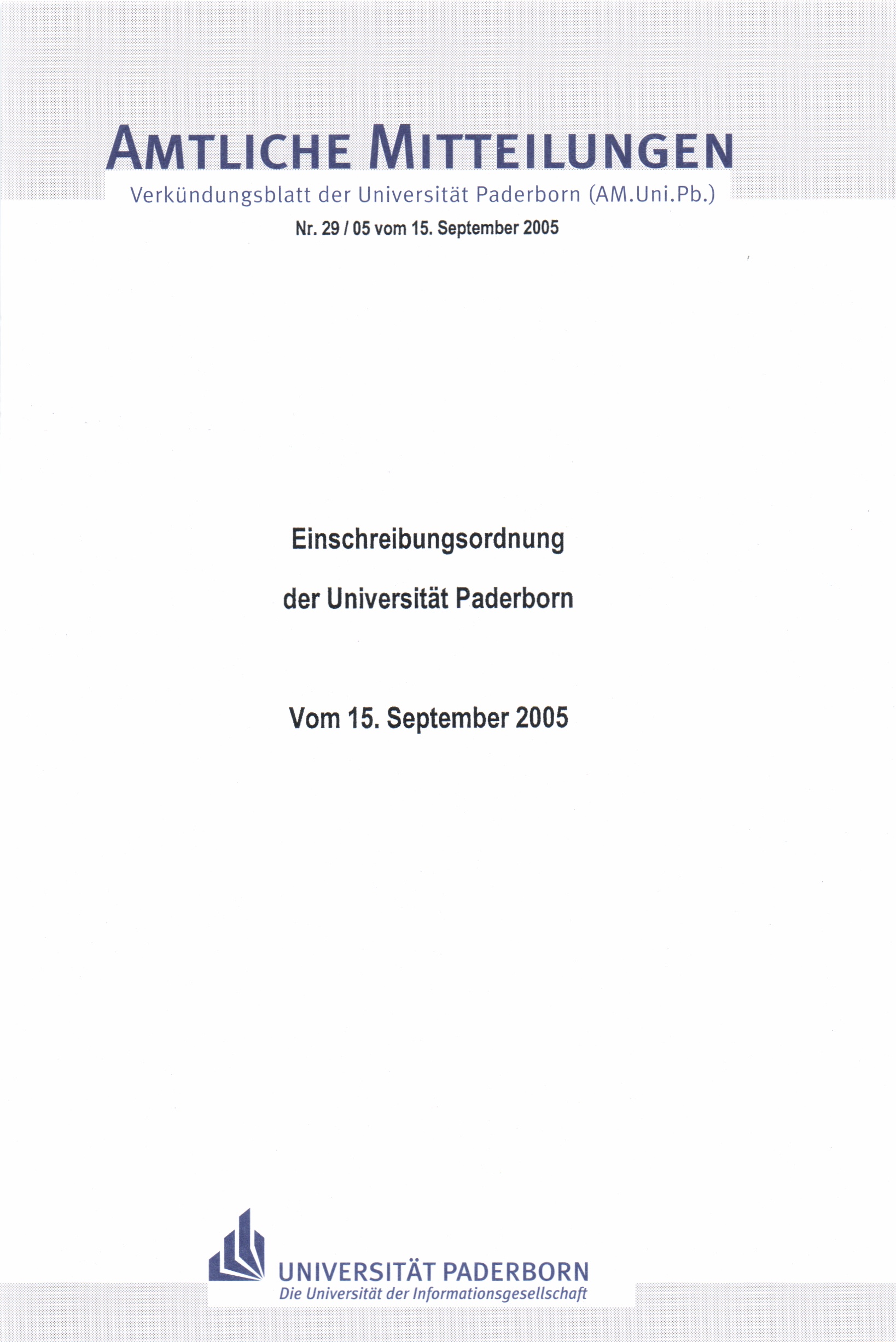 Einschreibungsordnung der Universität Paderborn : vom 15. September 2005