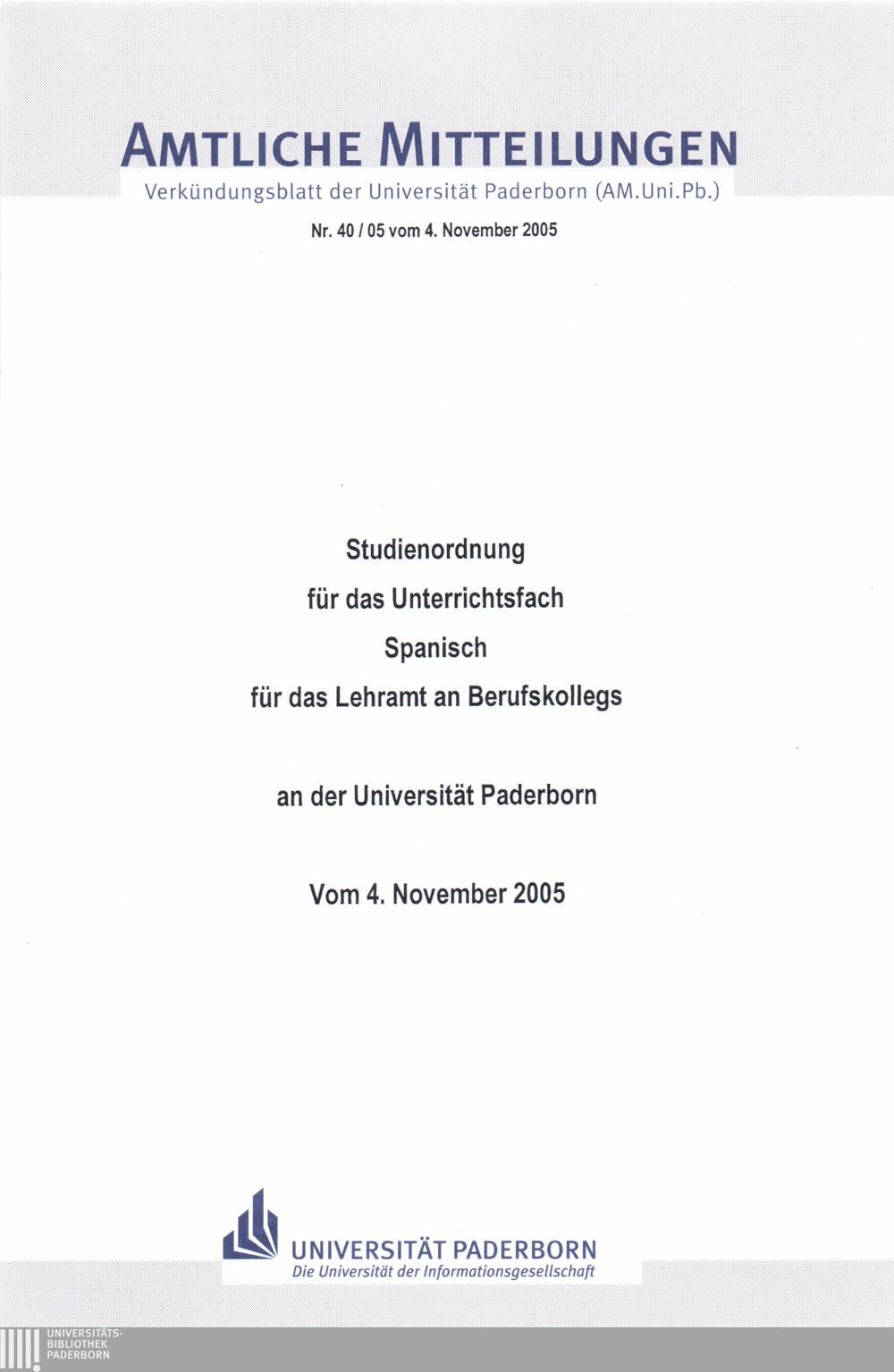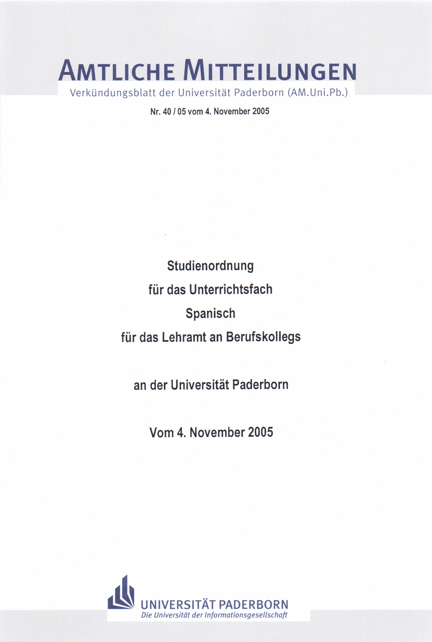 Studienordnung für das Unterrichtsfach Spanisch für das Lehramt an Berufskollegs an der Universität Paderborn : vom 4. November 2005