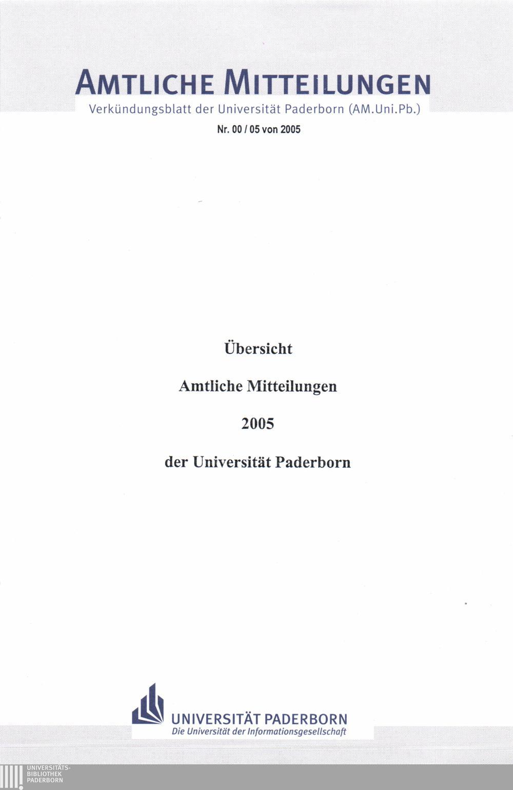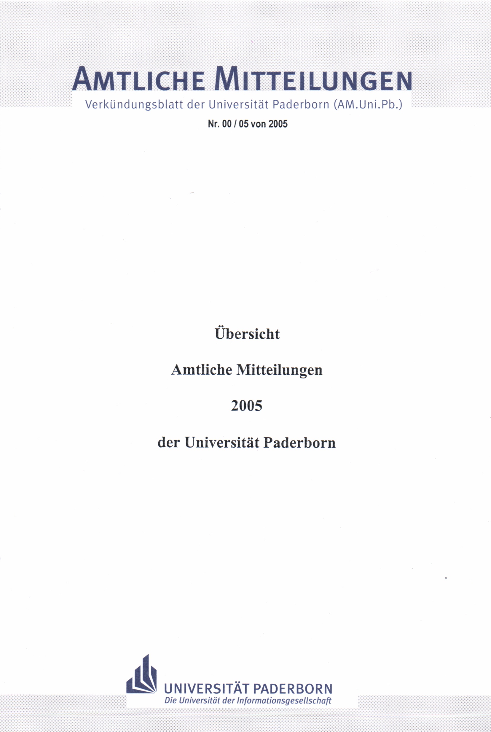 Übersicht Amtliche Mitteilungen 2005 der Universität Paderborn : [Verzeichnis der Amtlichen Mitteilungen der Universität Paderborn ; vom 1. Januar 2005 - 31. Dezember 2005]