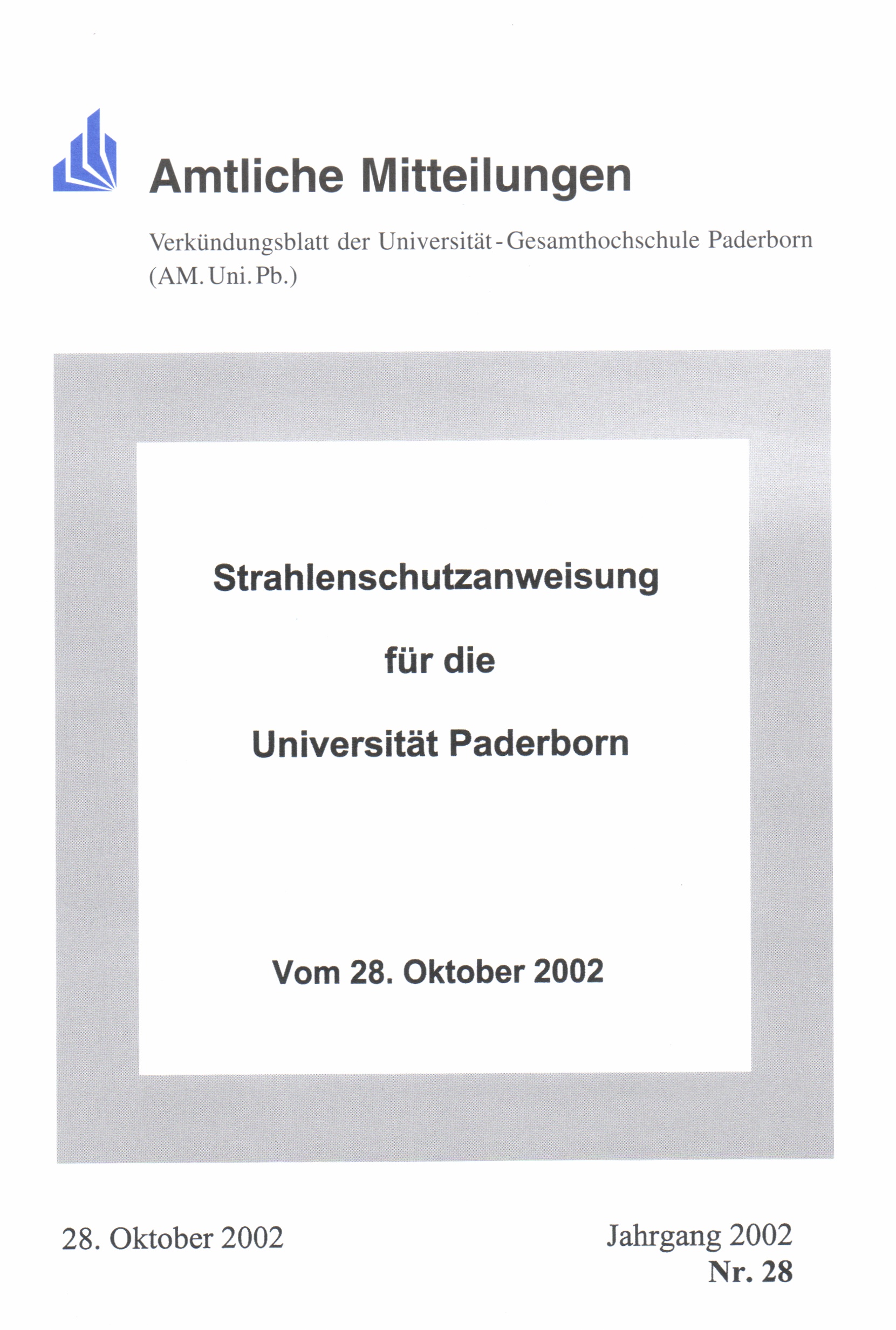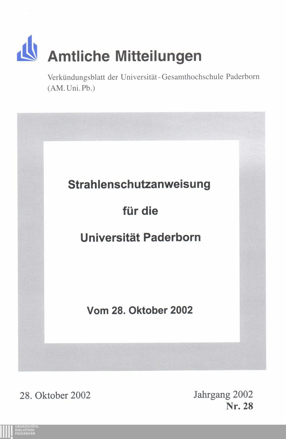Strahlenschutzanweisung für die Universität Paderborn : vom 28. Oktober 2002