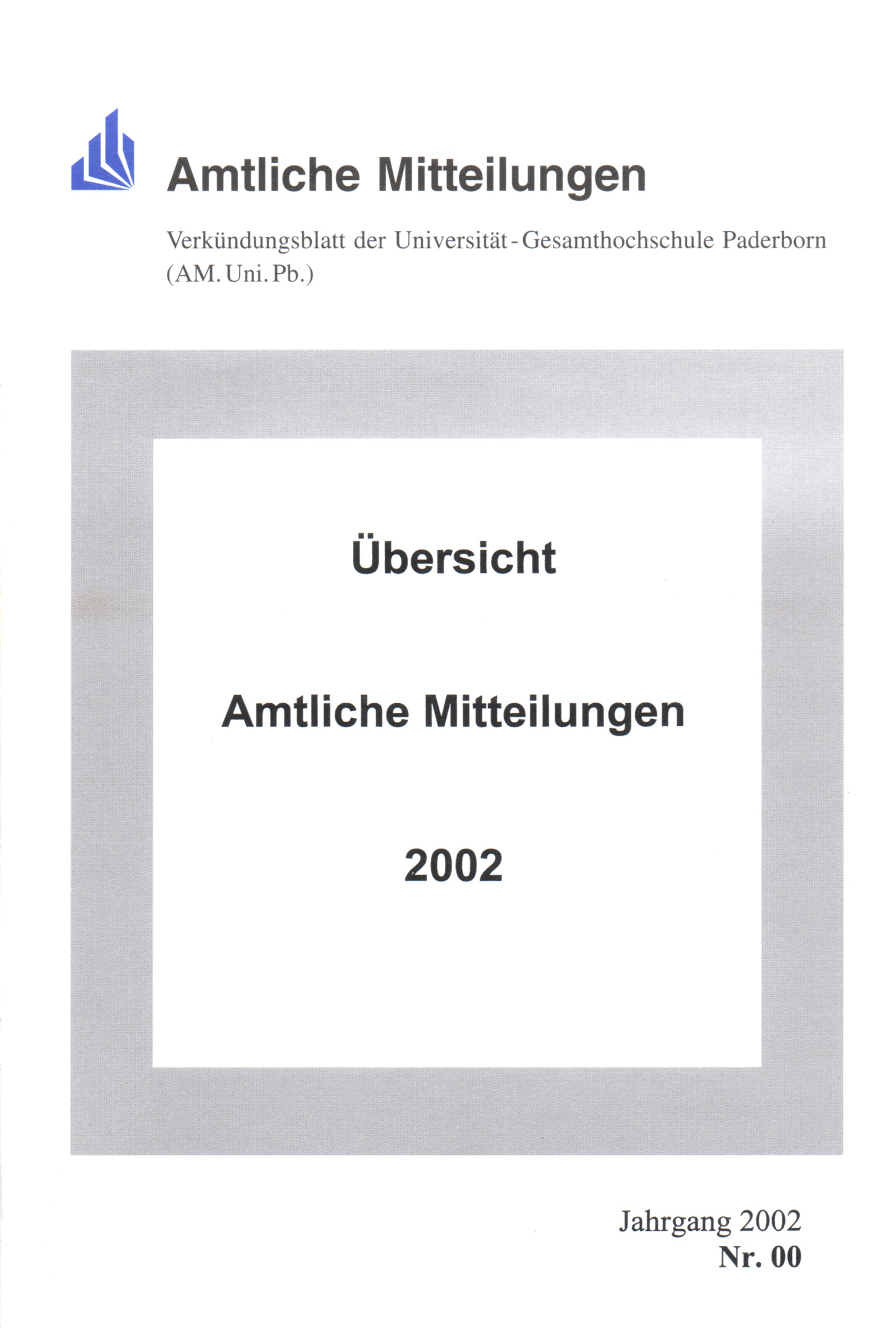 Übersicht Amtliche Mitteilungen 2002 : [Verzeichnis der Amtlichen Mitteilungen der Universität Paderborn ; vom 1. Januar 2002 - 31. Dezember 2002]