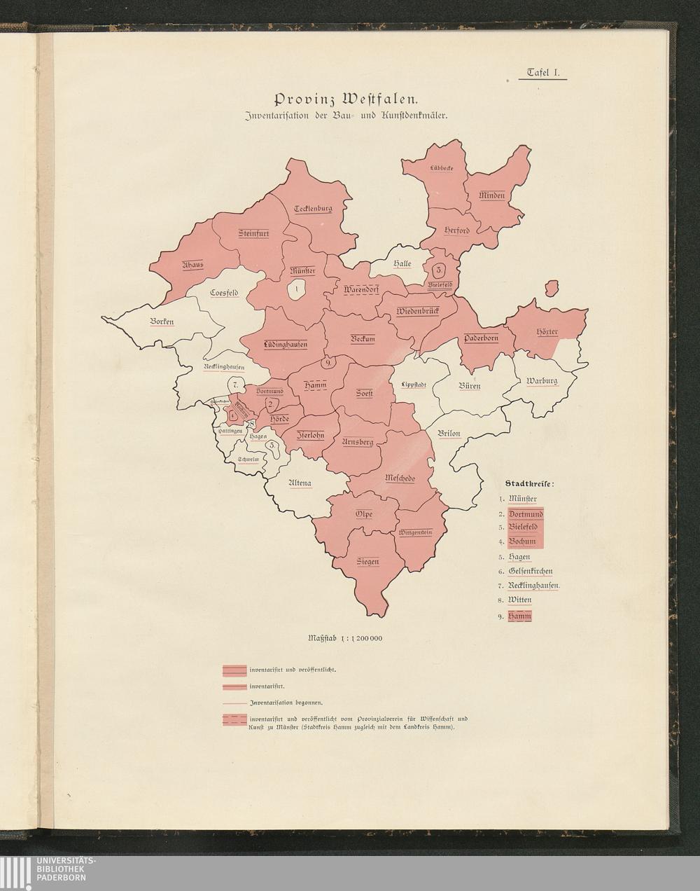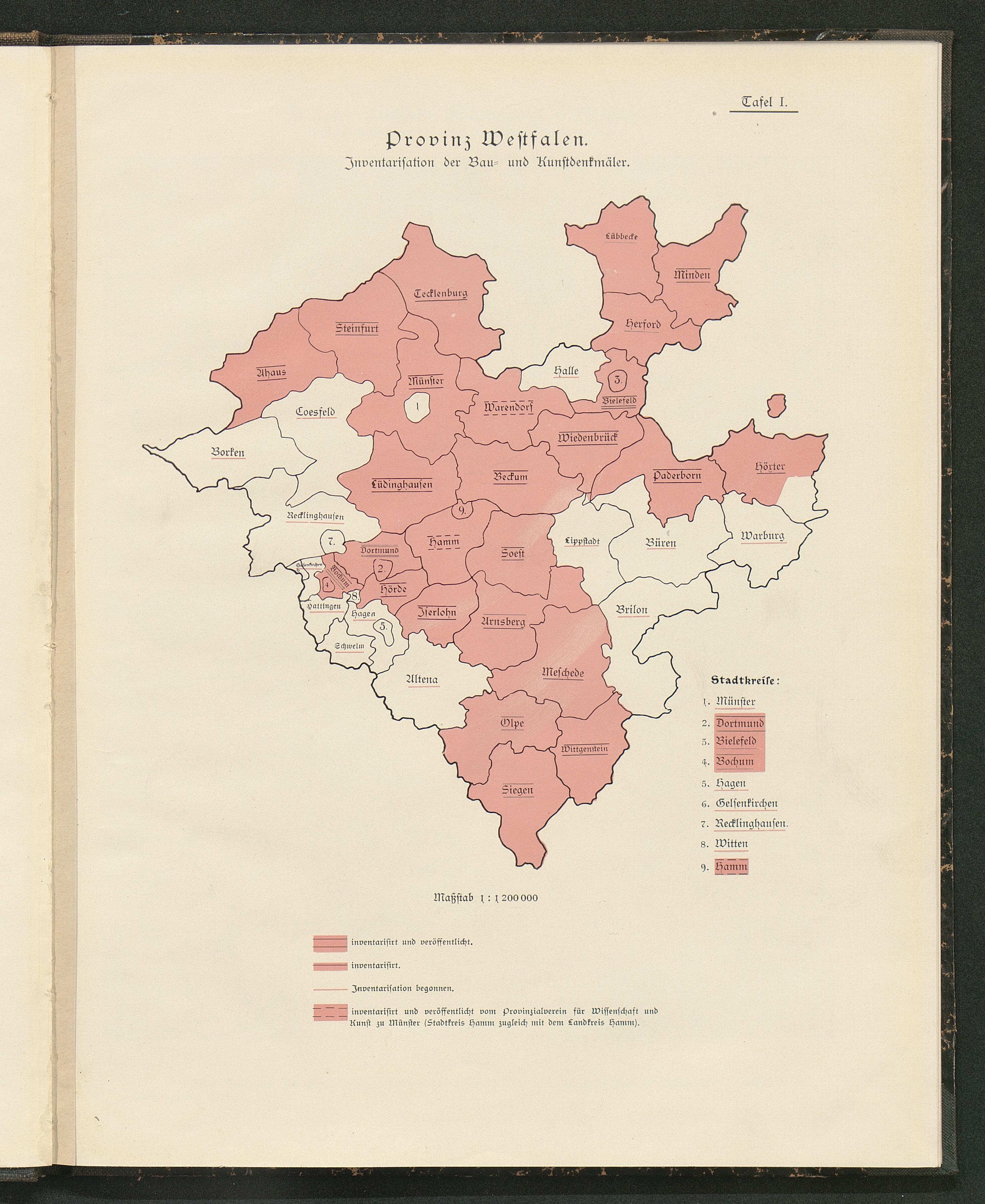 Karte der Provinz Westfalen (Stand der Inventarisationsarbeiten)