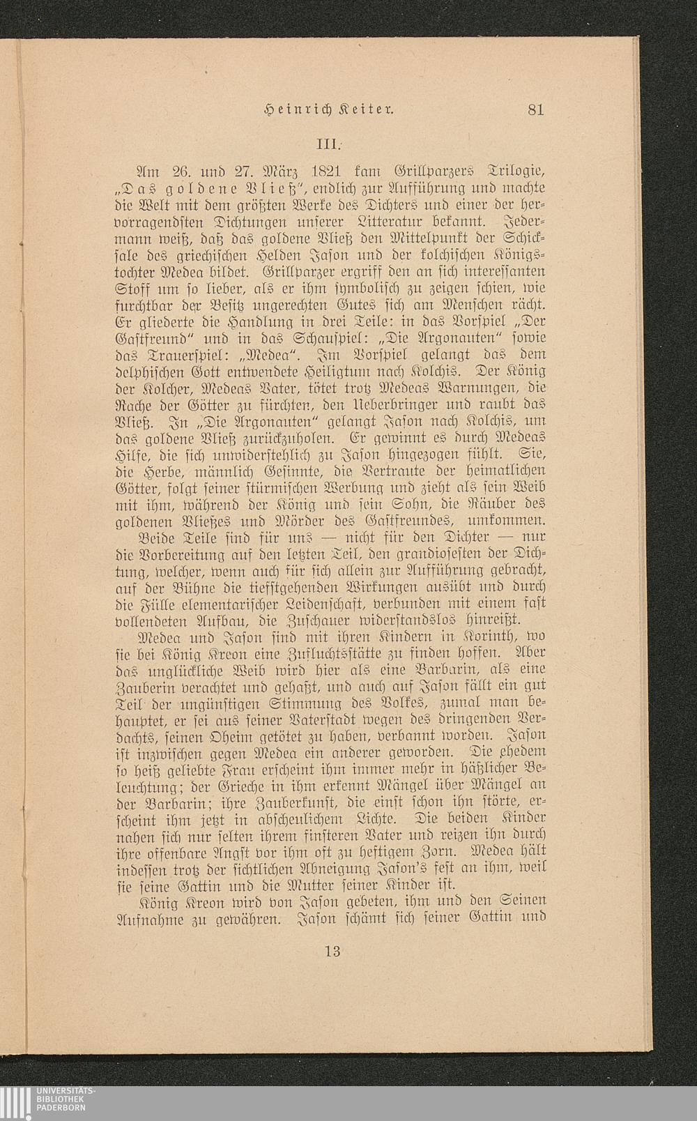 Franz Grillparzer : ein Gedenkblatt zum 15. Januar 1891 / Heinrich Keiter