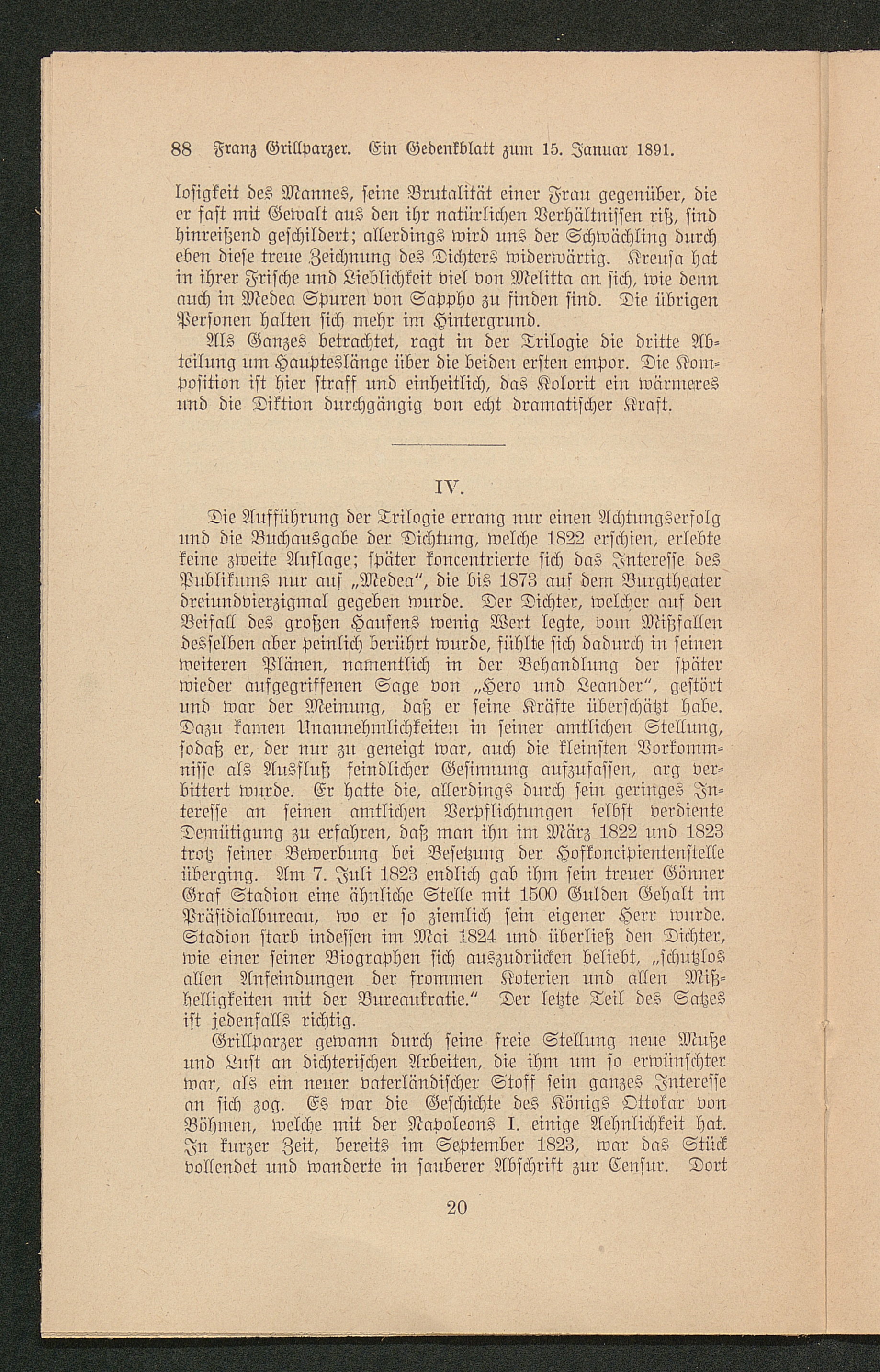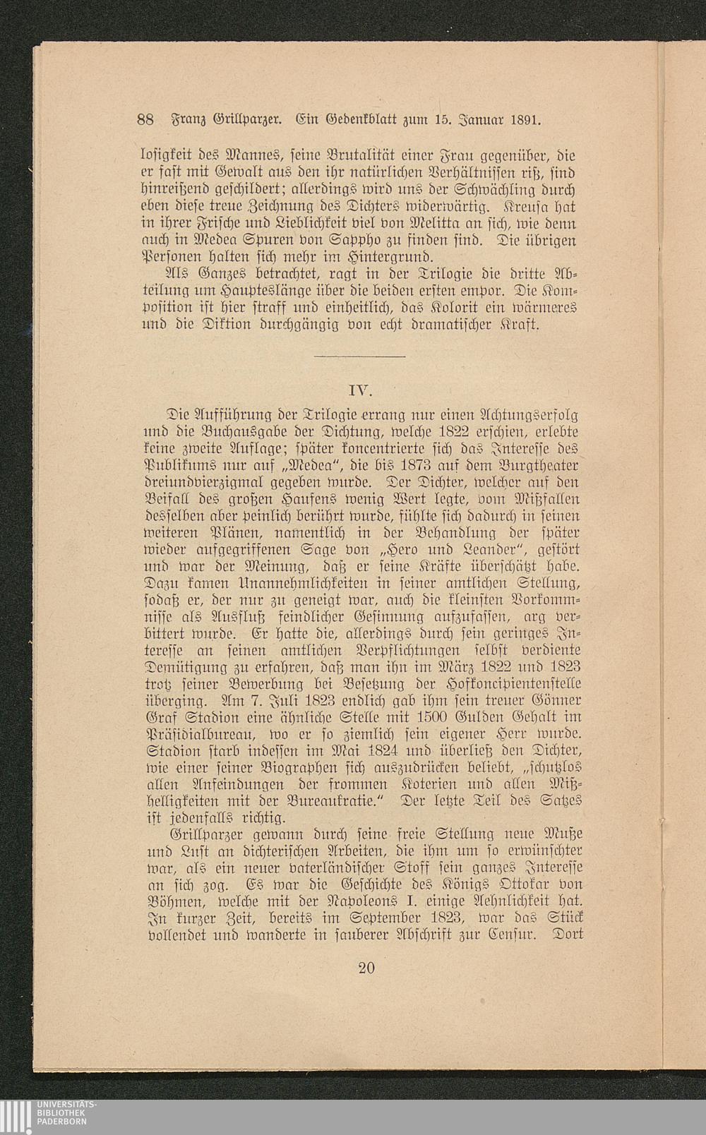 Franz Grillparzer : ein Gedenkblatt zum 15. Januar 1891 / Heinrich Keiter