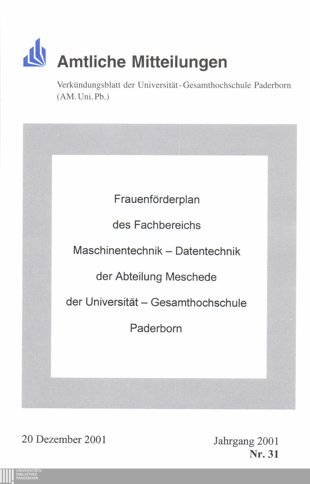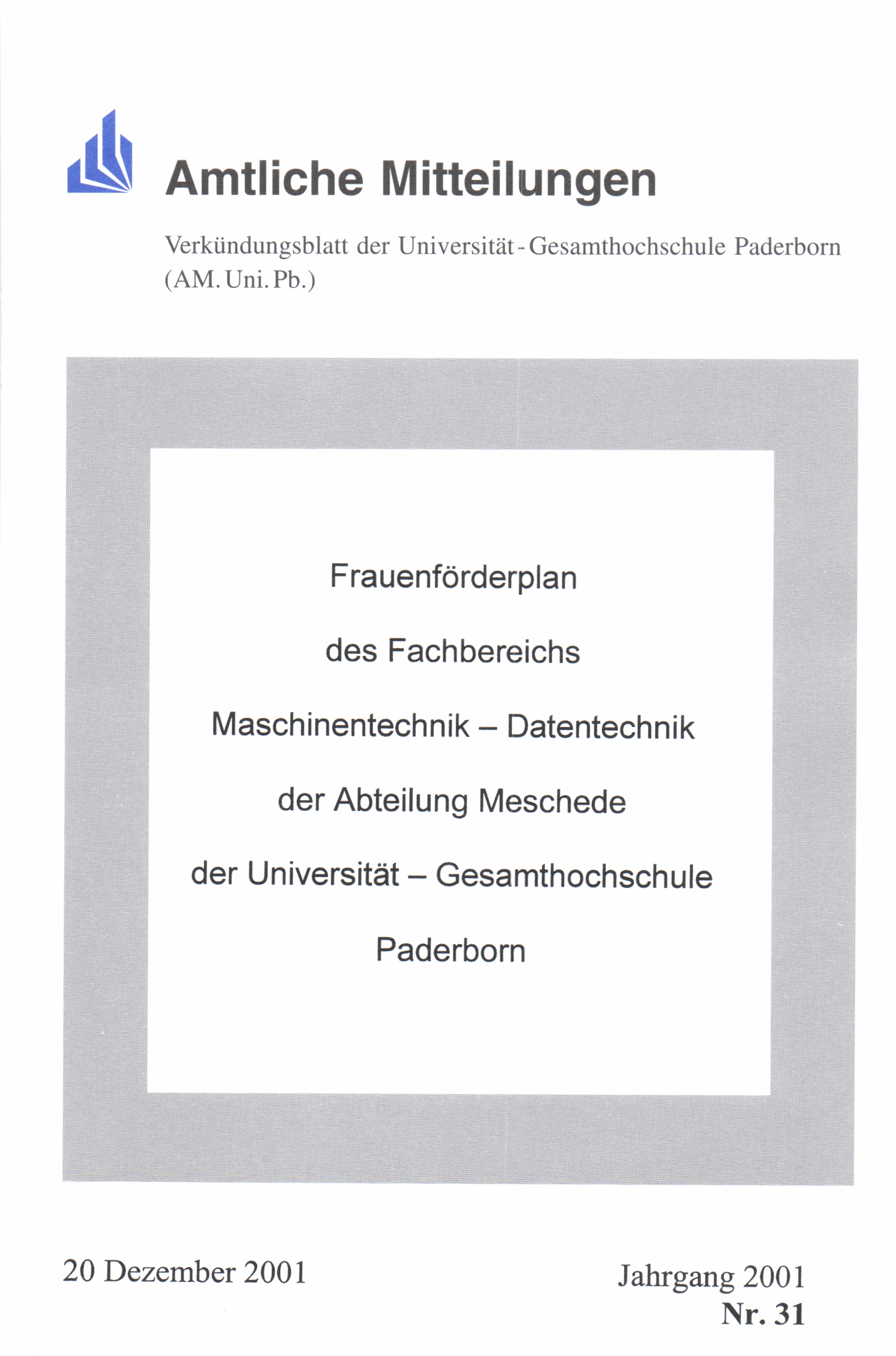Frauenförderplan des Fachbereichs Maschinentechnik, Datentechnik, der Abteilung Meschede der Universität-Gesamthochschule Paderborn : [vom 23.02.2001]