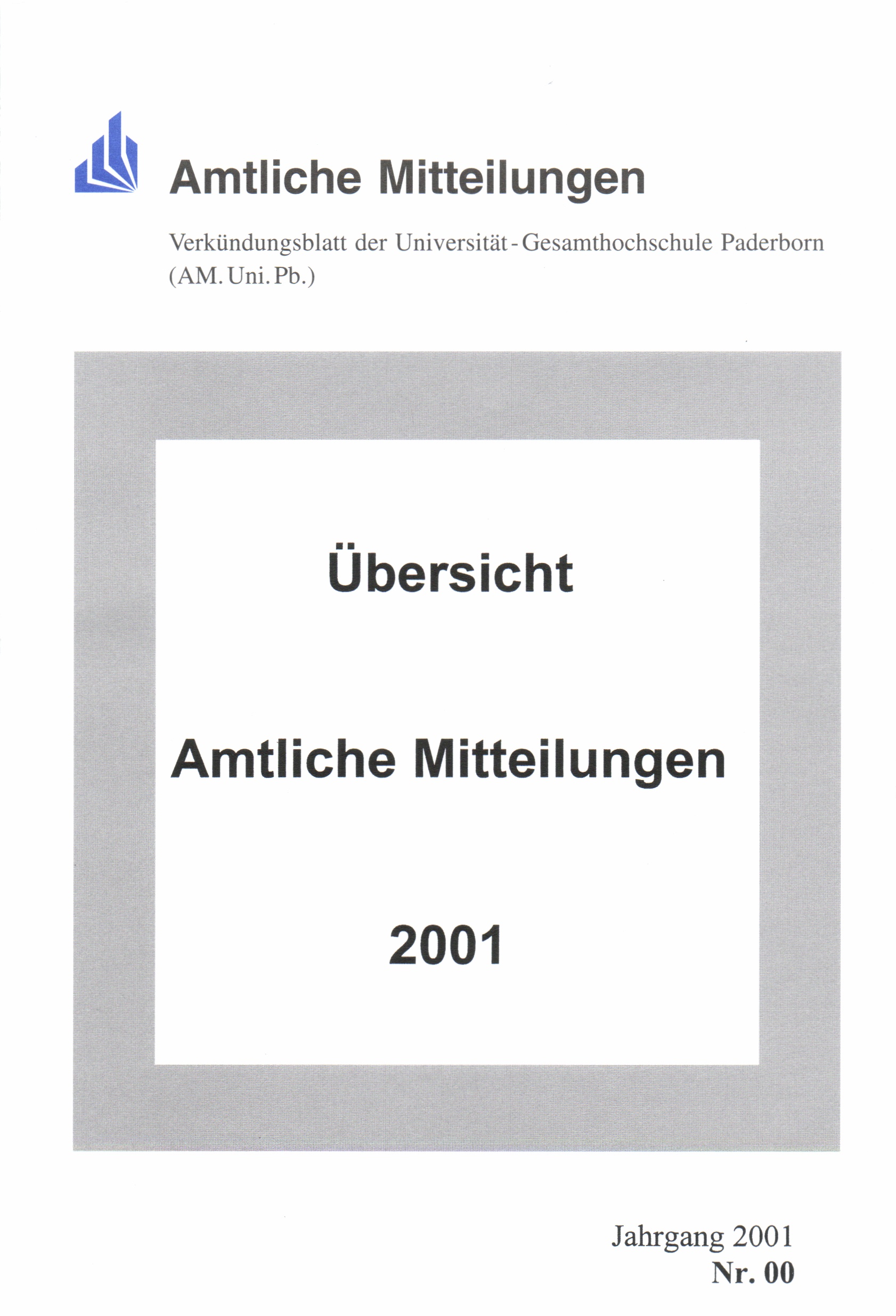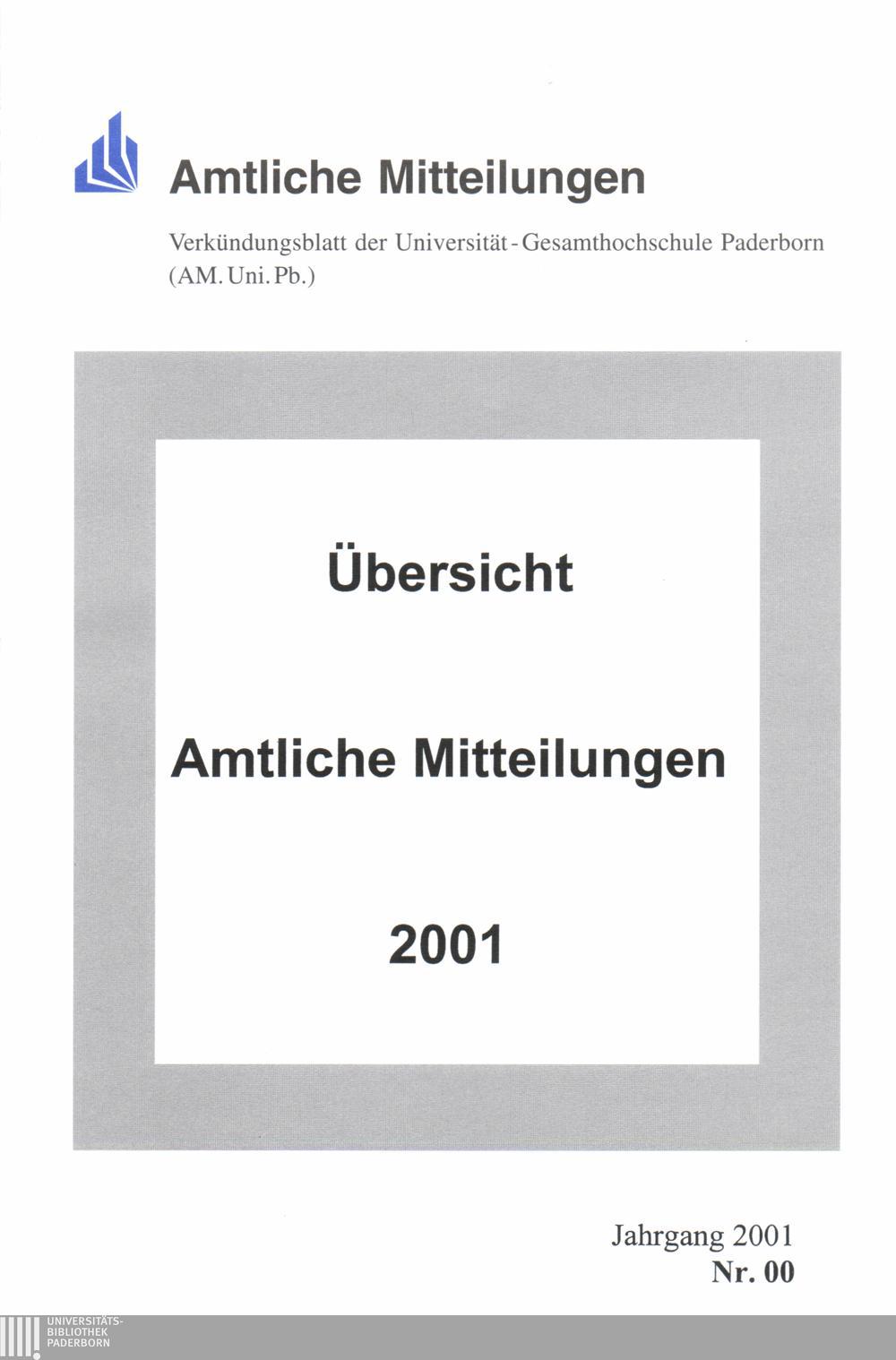 Übersicht Amtliche Mitteilungen 2001 : [Verzeichnis der Amtlichen Mitteilungen der Universität Paderborn ; vom 1. Januar 2001 - 31. Dezember 2001]
