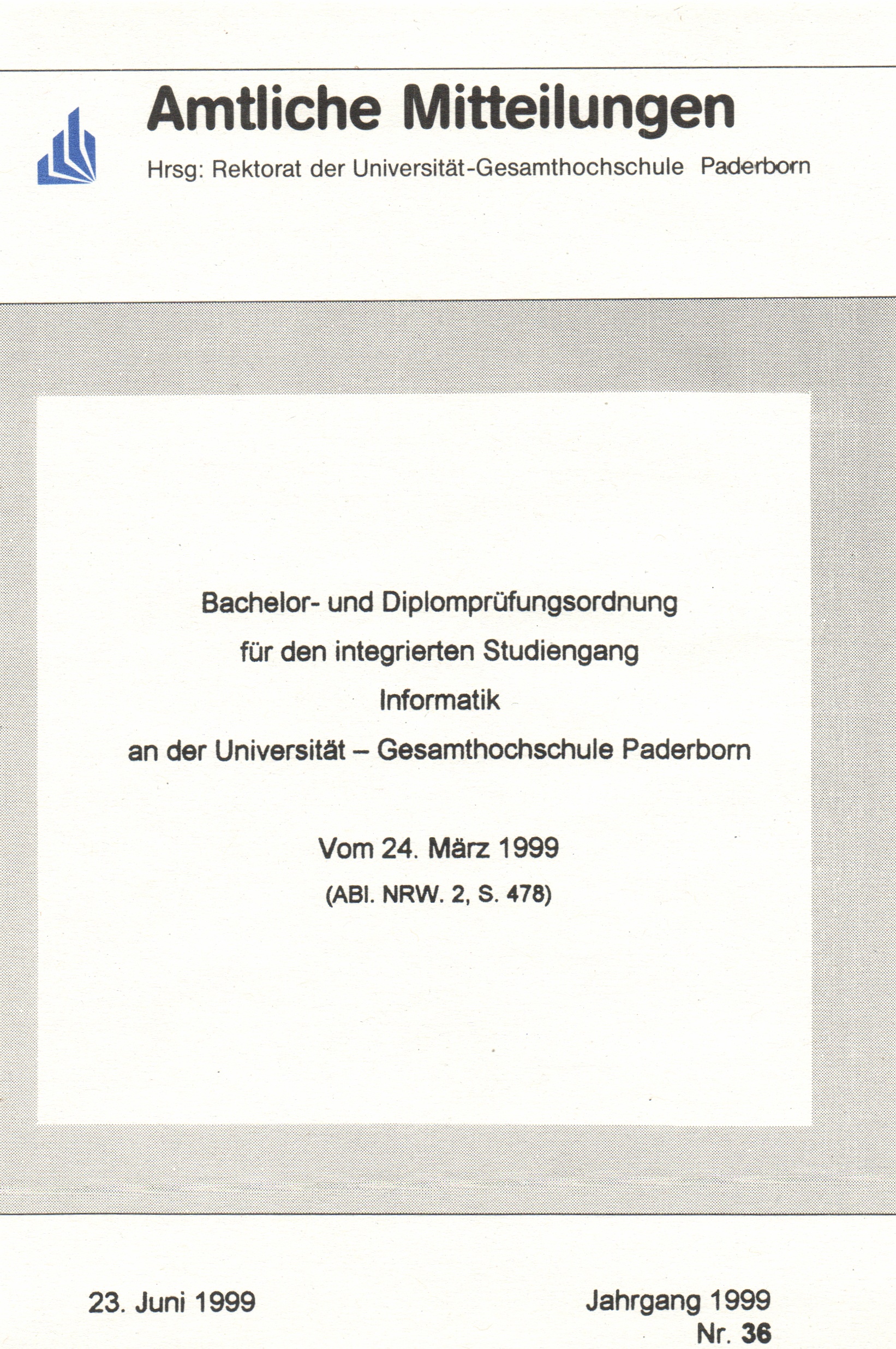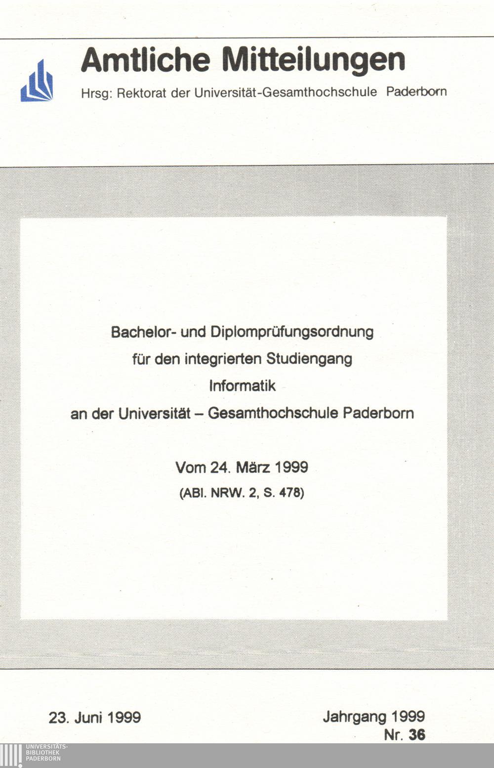 Bachelor- und Diplomprüfungsordnung für den integrierten Studiengang Informatik an der Universität - Gesamthochschule Paderborn : vom 24. März 1999