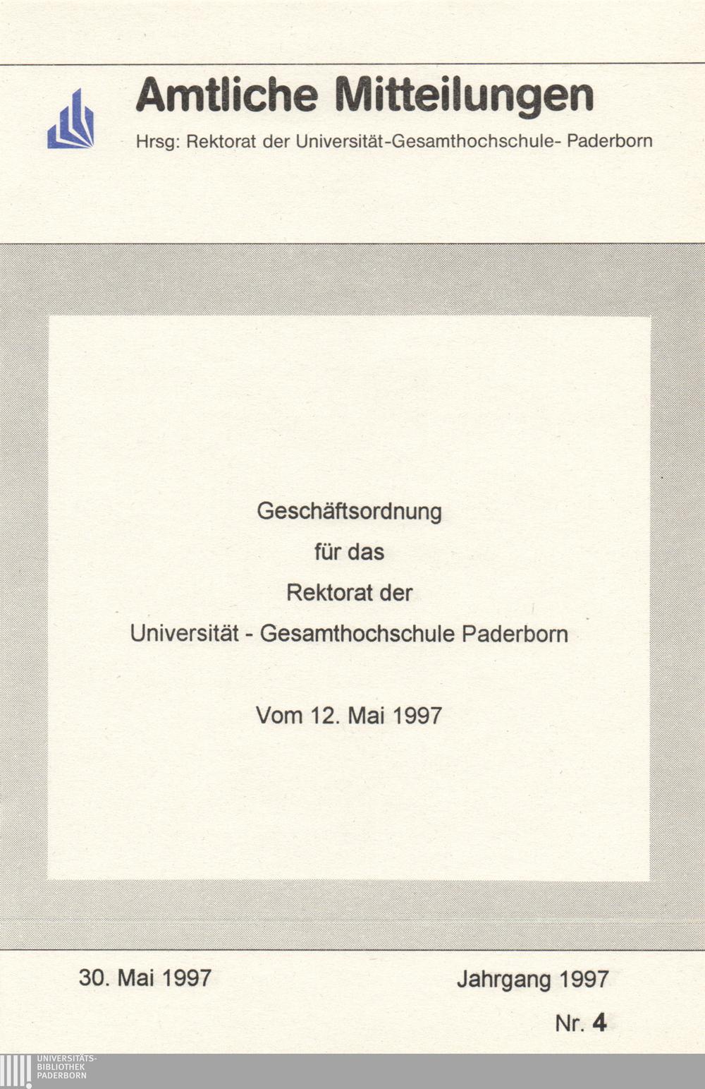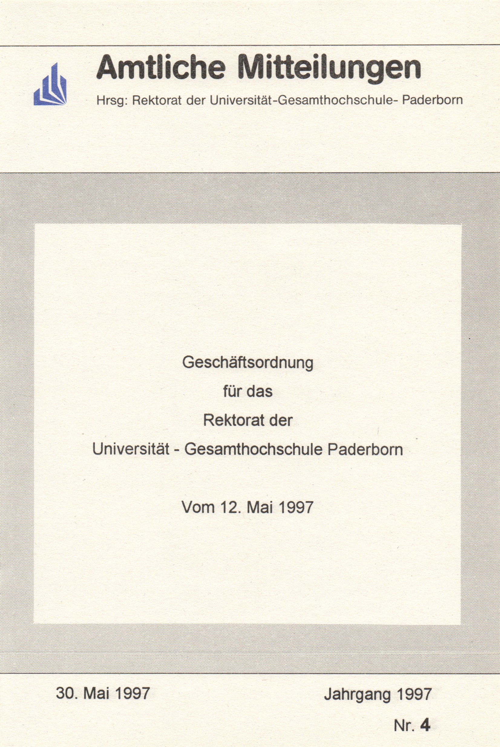 Geschäftsordnung für das Rektorat der Universität - Gesamthochschule Paderborn : vom 12. Mai 1997