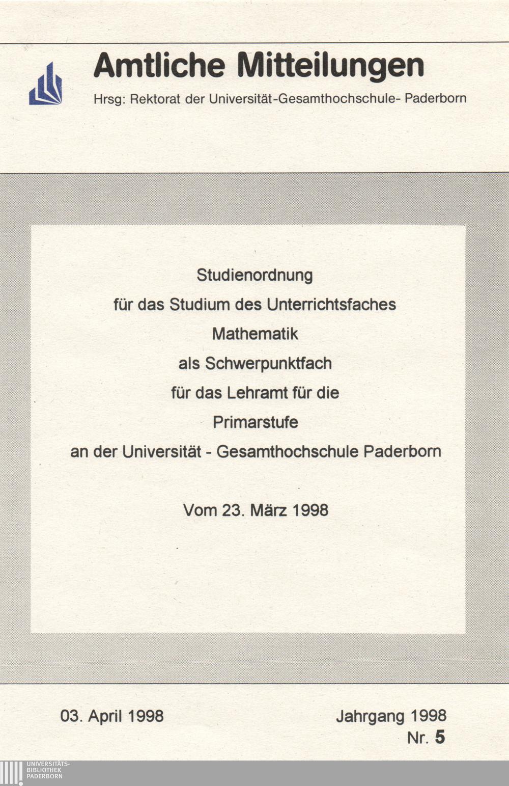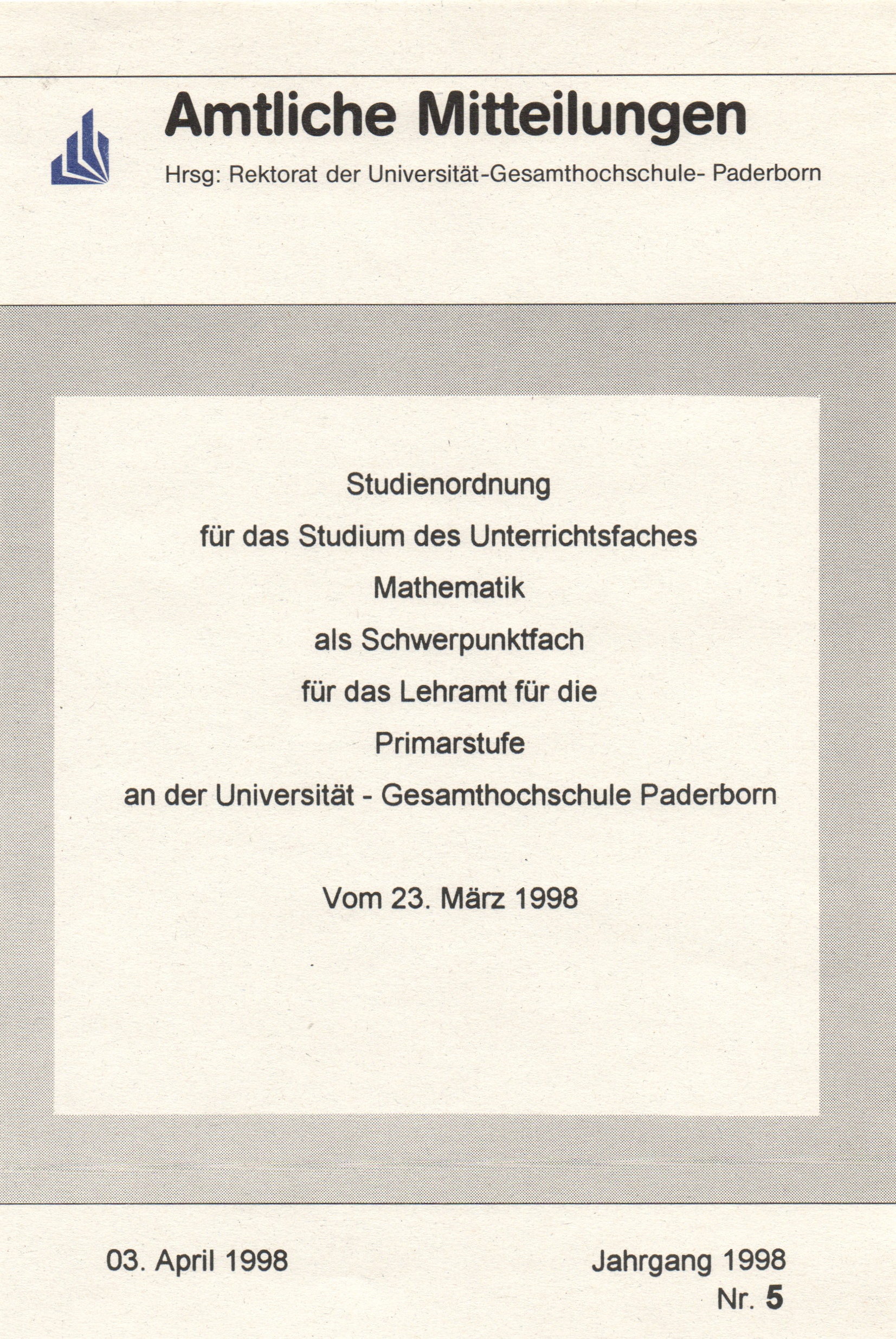 Studienordnung für das Studium des Unterrichtsfaches Mathematik als Schwerpunktfach für das Lehramt für die Primarstufe an der Universität - Gesamthochschule Paderborn : vom 23. März 1998