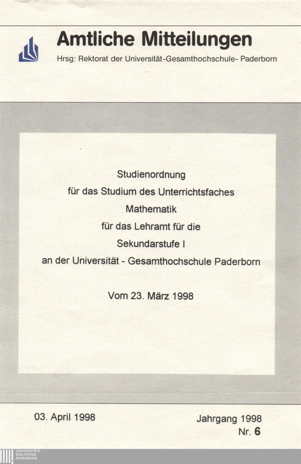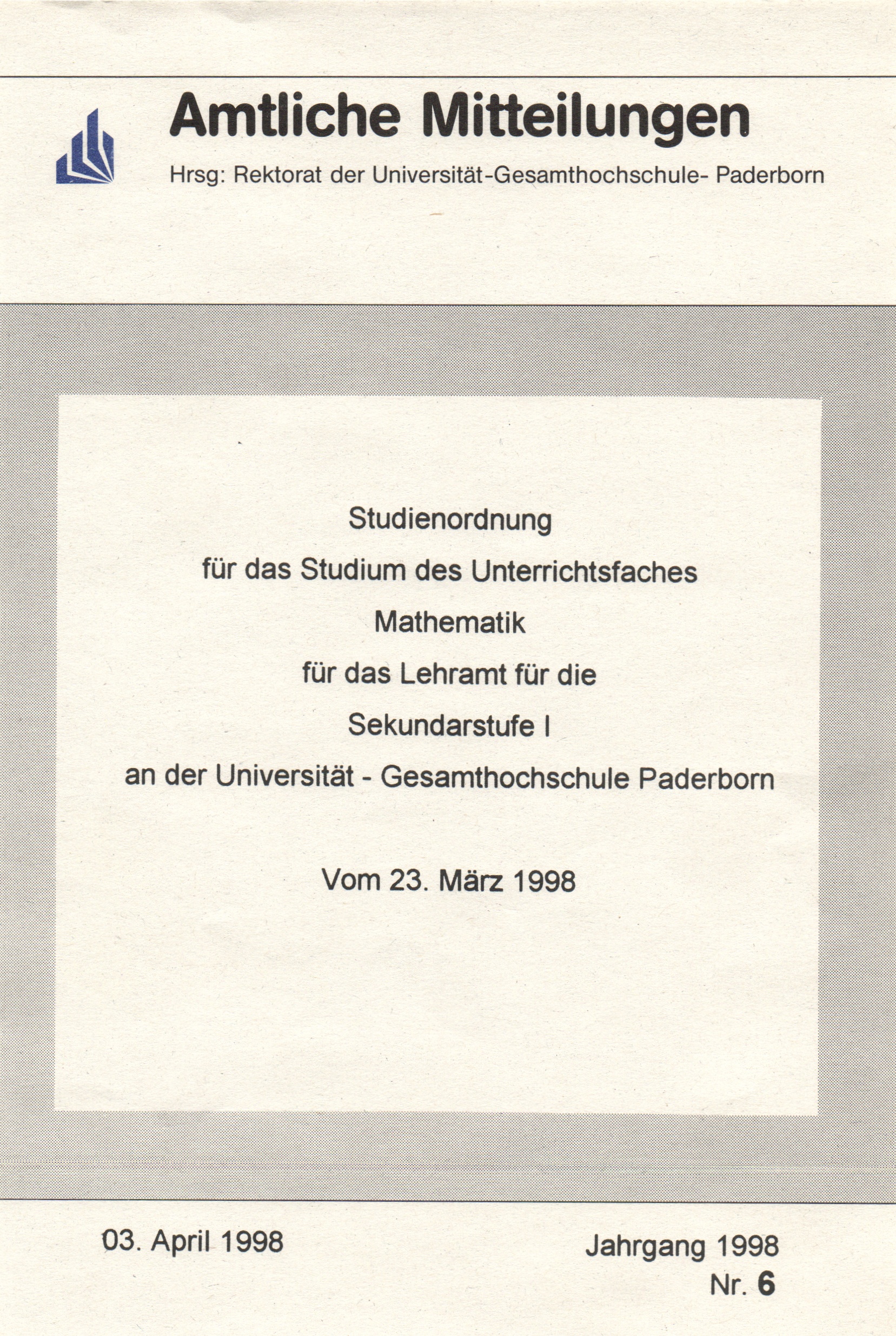 Studienordnung für das Studium des Unterrichtsfaches Mathematik für das Lehramt für die Sekundarstufe I an der Universität - Gesamthochschule Paderborn : vom 23. März 1998