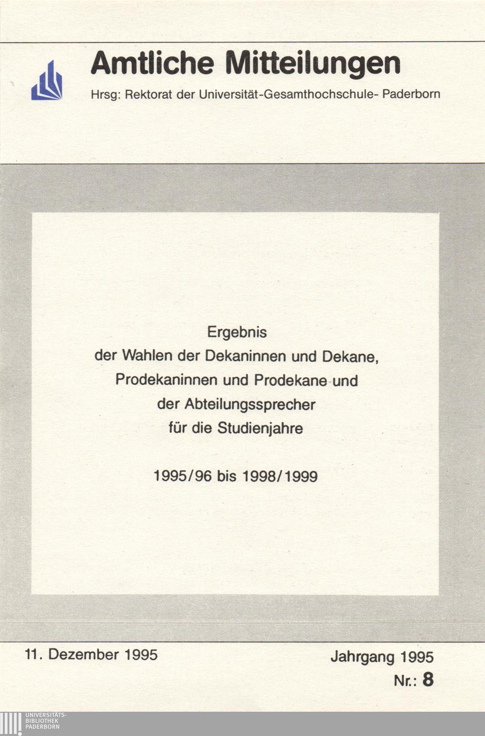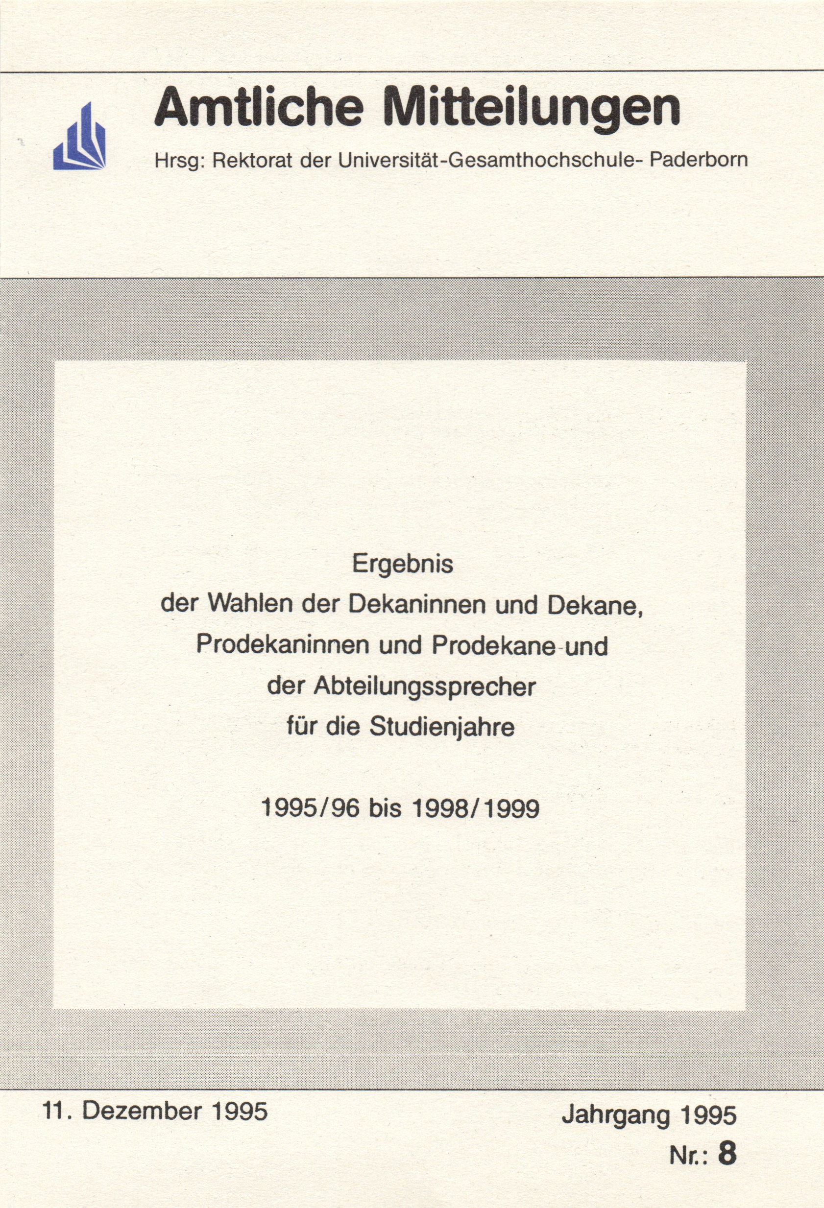 Ergebnis der Wahlen der Dekaninnen und Dekane, Prodekaninnen und Prodekane und der Abteilungssprecher für die Studienjahre 1995/96 bis 1998/1999