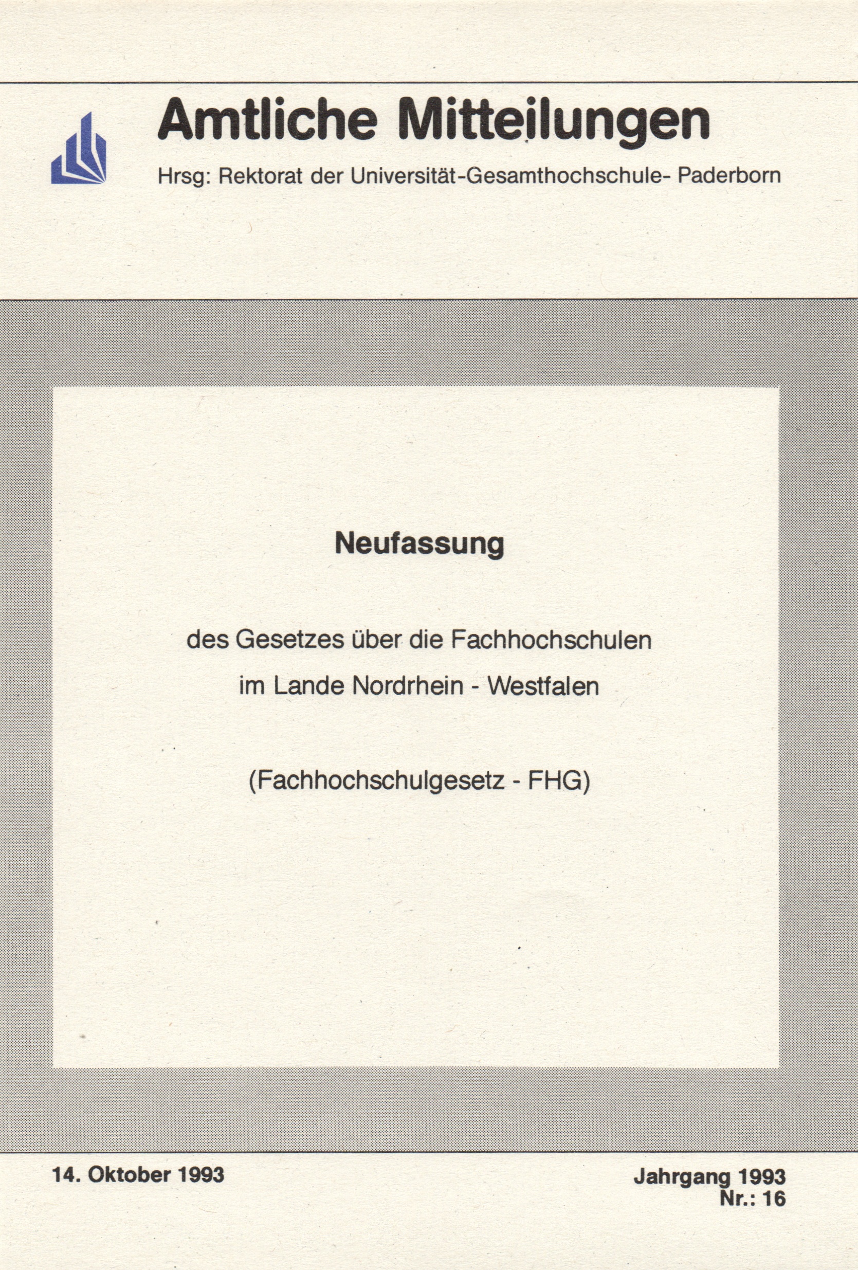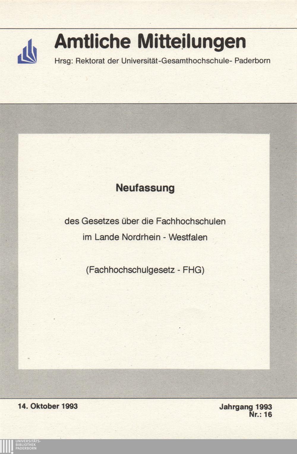 Neufassung des Gesetzes über die Fachhochschulen im Lande Nordrhein-Westfalen : (Fachhochschulgesetz - FHG) ; [in der Fassung der Bekanntmachung vom 3. August 1993]
