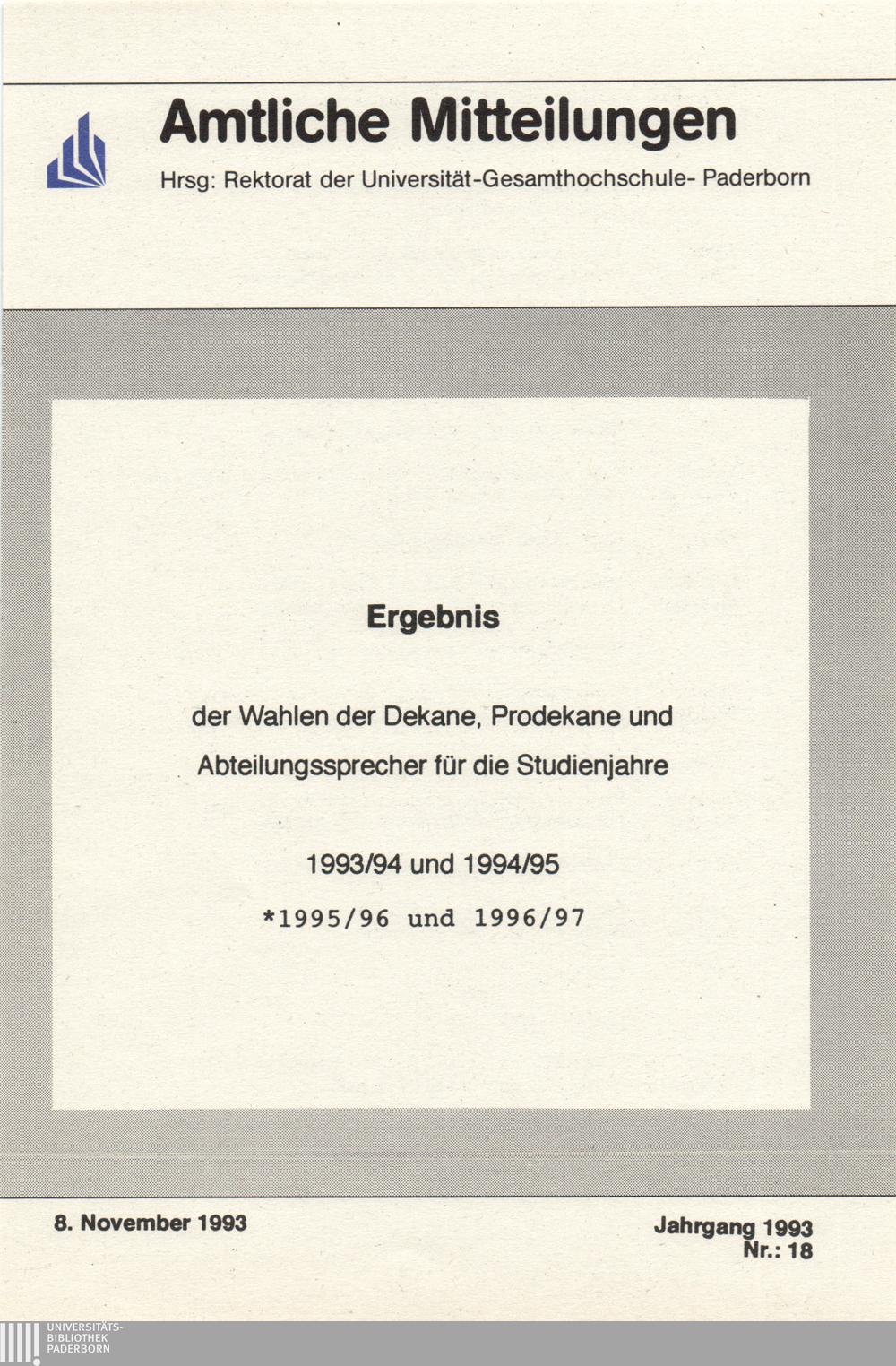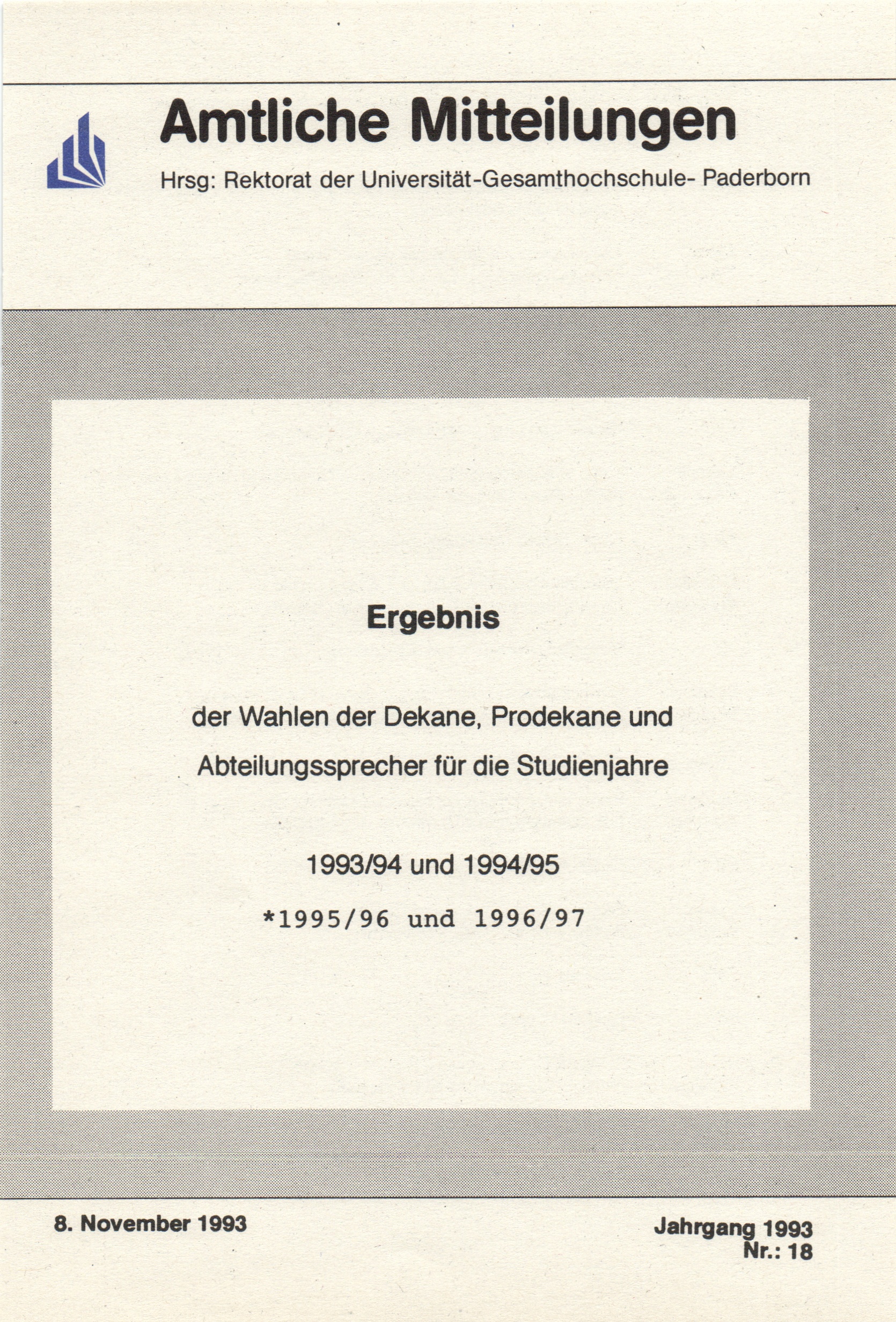 Ergebnis der Wahlen der Dekane, Prodekane und Abteilungssprecher für die Studienjahre 1993/94 und 1994/95, 1995/96 und 1996/97