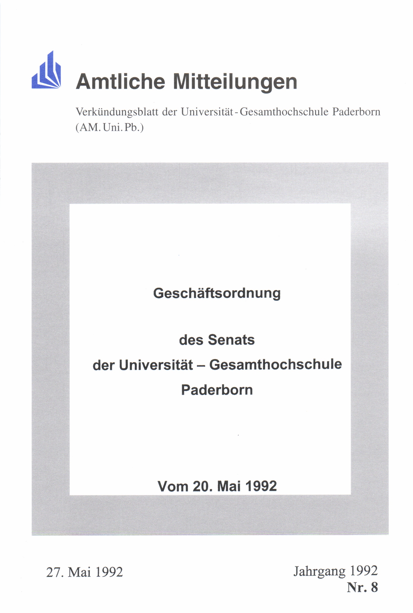 Geschäftsordnung des Senats der Universität - Gesamthochschule - Paderborn : vom 20. Mai 1992